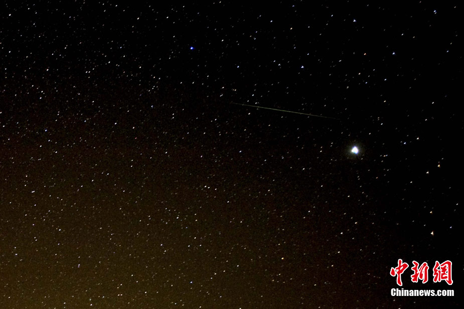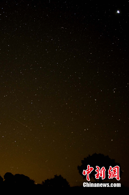 北半球三大流星雨之一的英仙座流星雨12日晚至13日凌晨光臨地球。圖為在西班牙南部格拉薩萊馬附近看到的英仙座流星雨。