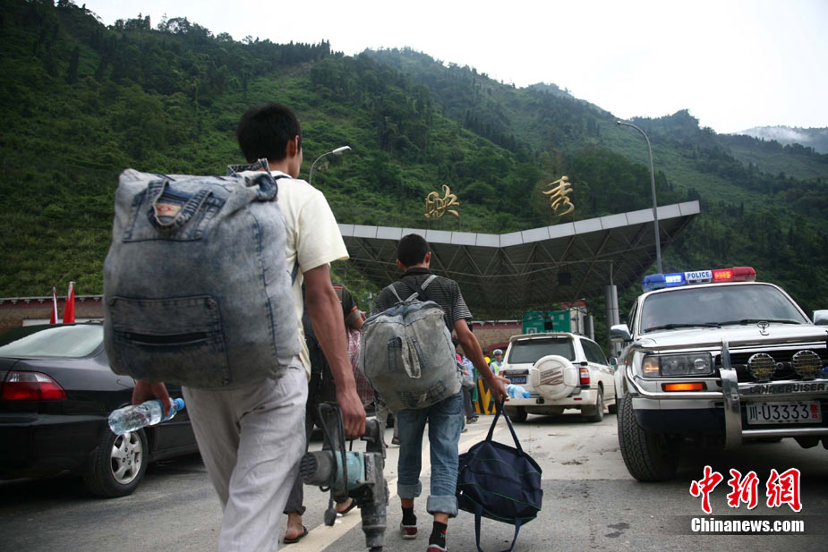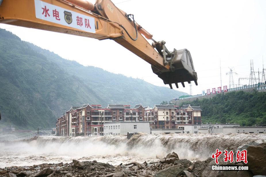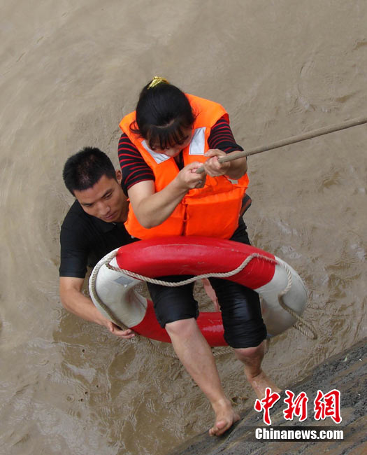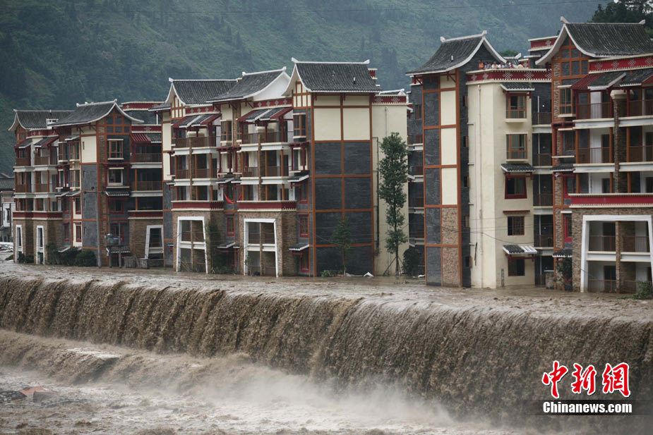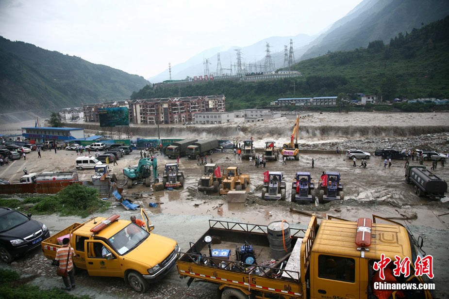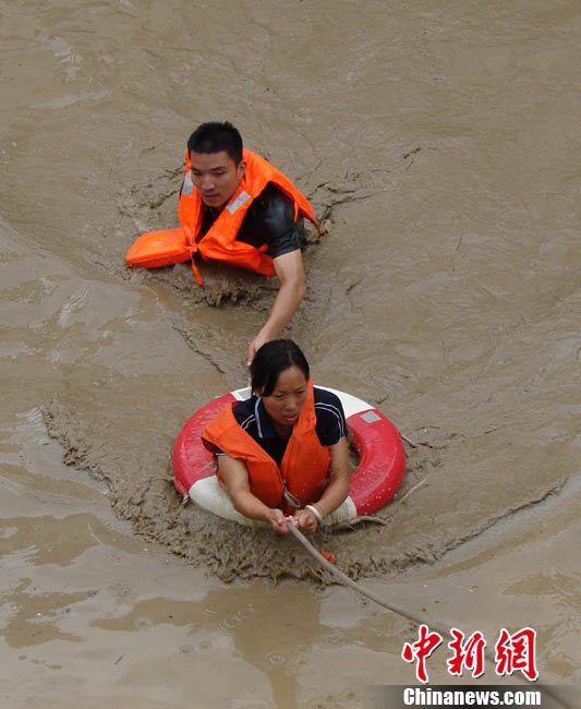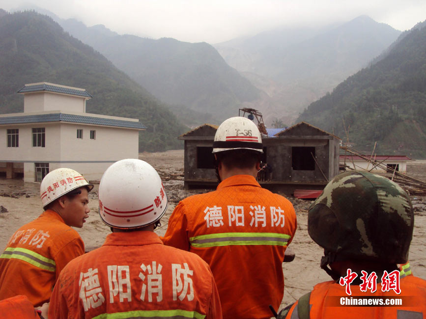 8月14日,“5.12”震中四川汶川映秀鎮(zhèn)遭遇洪澇泥石流災害,形成地質災害點16個,導致汶川38人失蹤。圖為消防官兵正在轉移被困民眾。 中新社發(fā) 沈消軒 攝