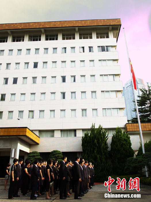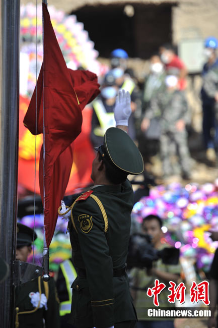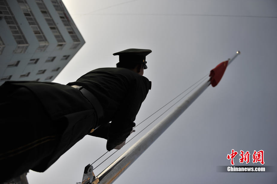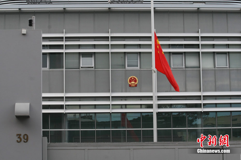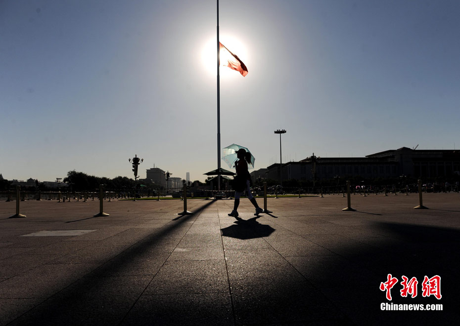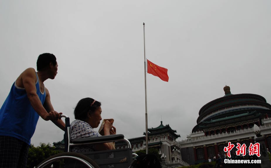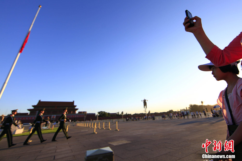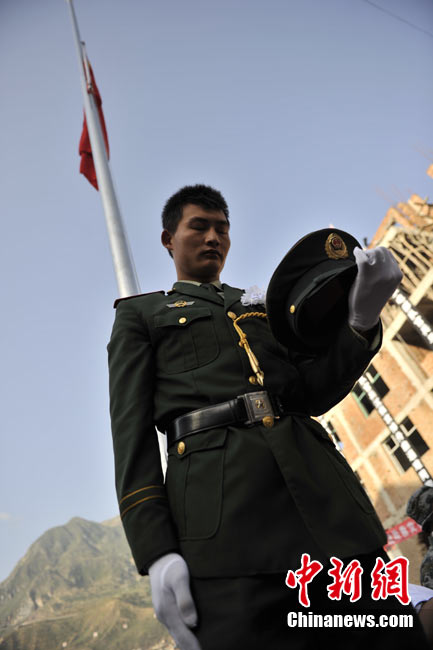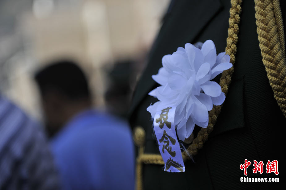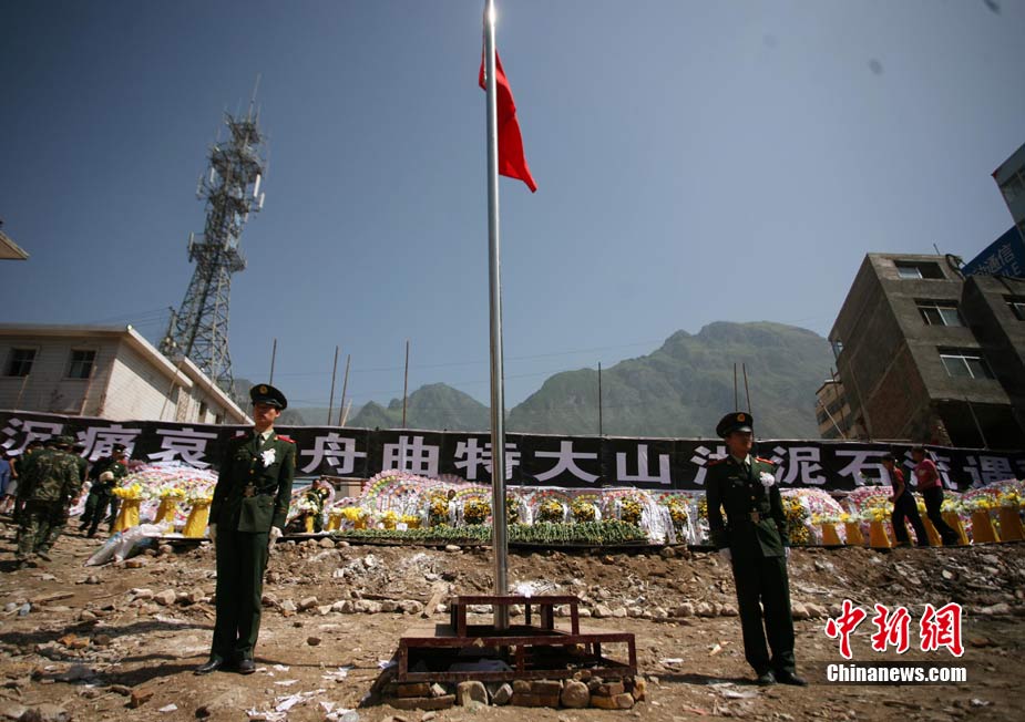 8月15日5時(shí)28分,天安門廣場(chǎng)下半旗,對(duì)甘肅舟曲特大山洪泥石流遇難同胞表示深切哀悼。這是繼2008年5月汶川地震和今年4月玉樹地震后,國旗第三度為普通國民而降。中新社記者 富田 攝