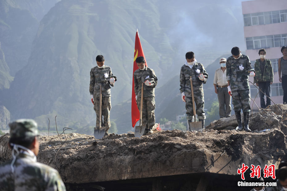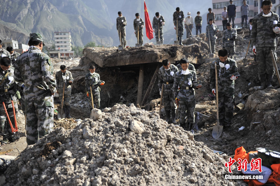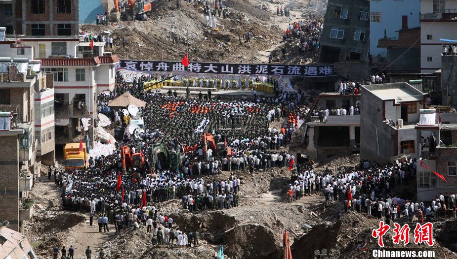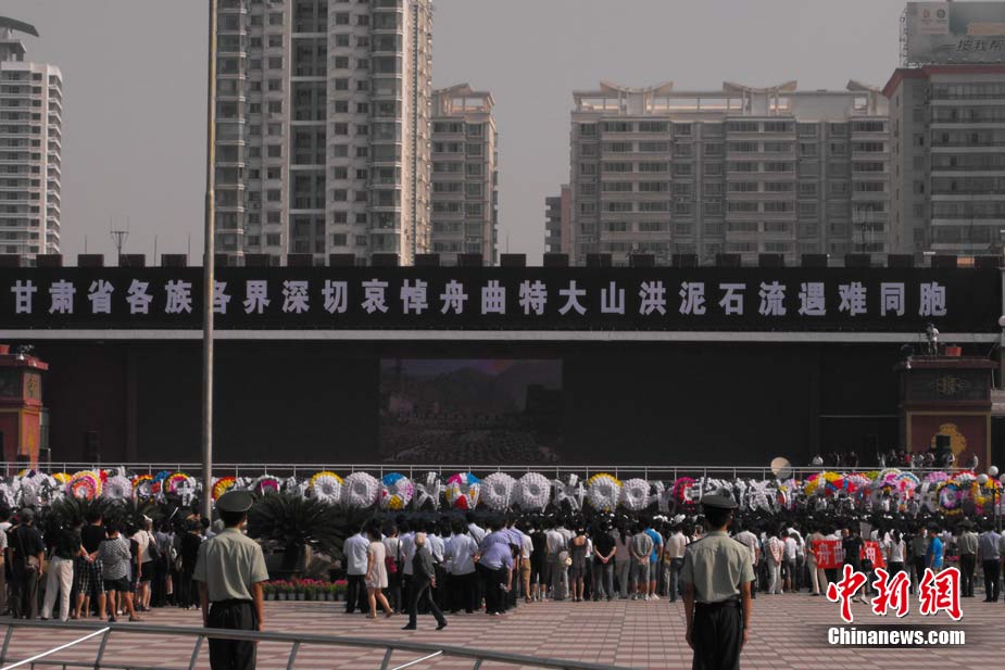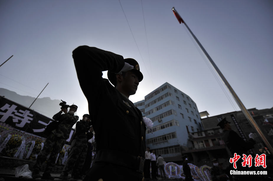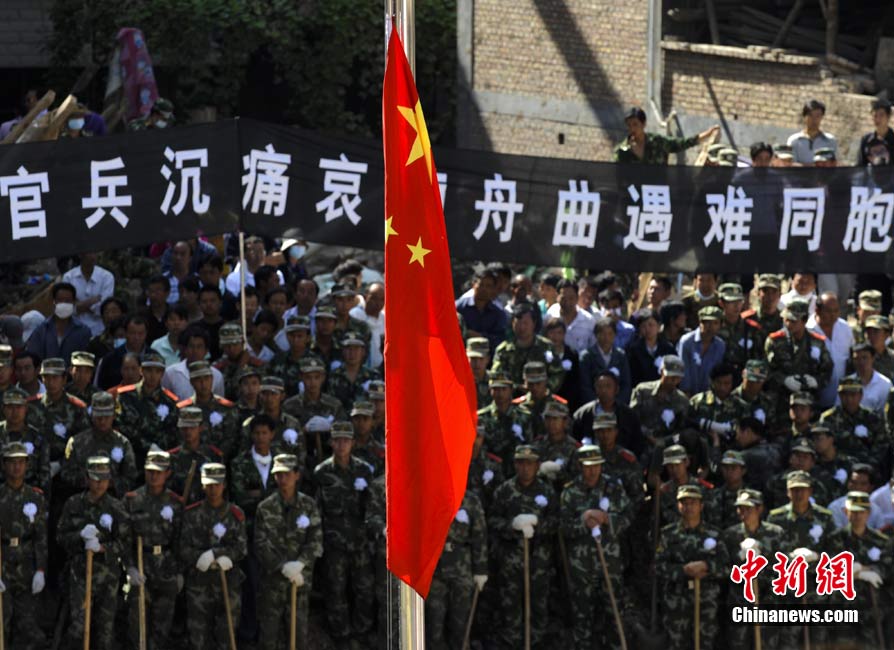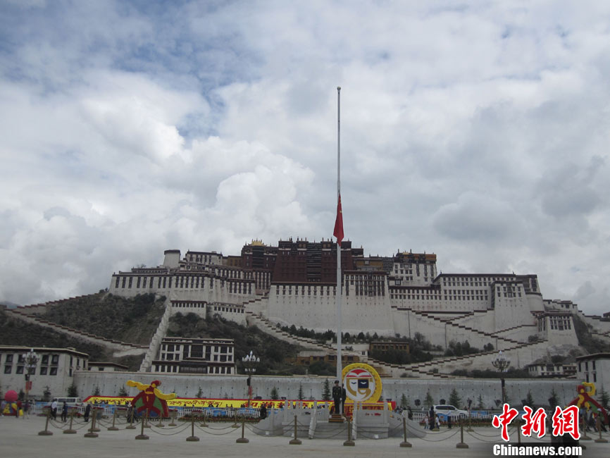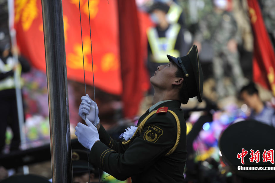 8月15日5時(shí)28分,天安門廣場(chǎng)下半旗,對(duì)甘肅舟曲特大山洪泥石流遇難同胞表示深切哀悼。這是繼2008年5月汶川地震和今年4月玉樹地震后,國旗第三度為普通國民而降。中新社記者 富田 攝