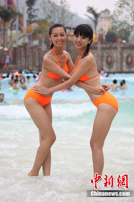 中新網(wǎng)重慶8月16日電 (連肖) 陽光、椰林、水浪、比基尼……16日,第三屆中國僑鄉(xiāng)麗人風(fēng)采大賽重慶賽區(qū)的24位美女走進(jìn)加勒比海水上樂園,穿比基尼在水上爭奇斗艷。依然 攝