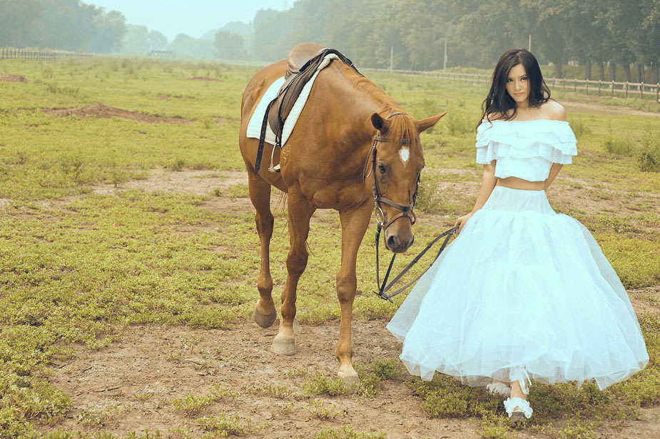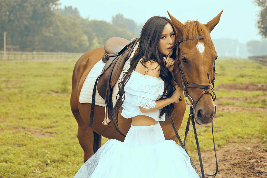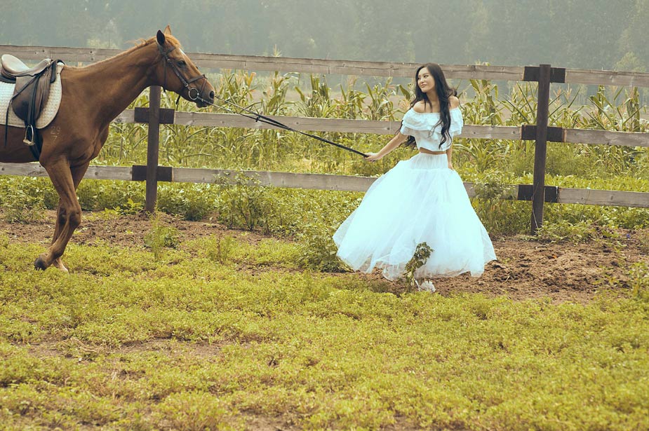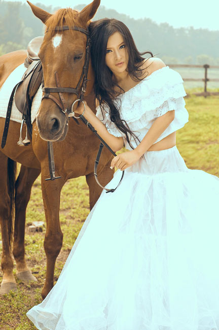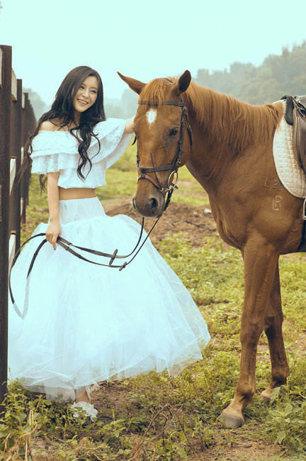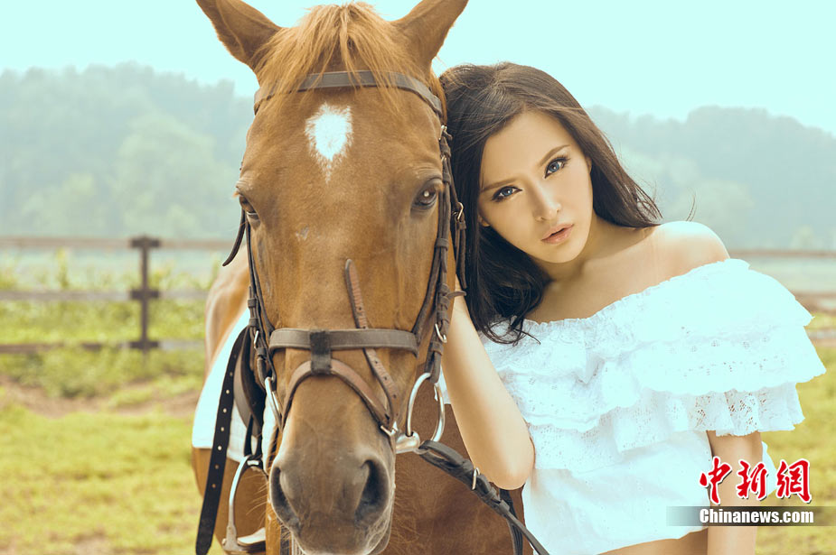 近日,有小范冰冰之稱的足球寶貝楊棋涵來到馬場拍攝一組寫真,嫵媚動人彰顯性感魅力,廣闊的天空襯托她高挑的身材更具時尚感。