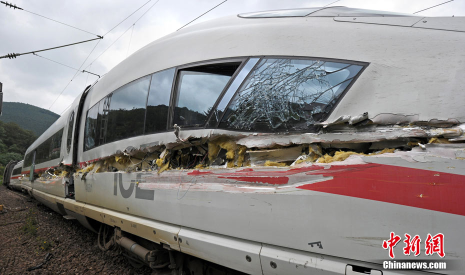 德國一高速列車與垃圾車相撞后出軌