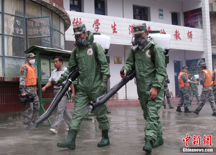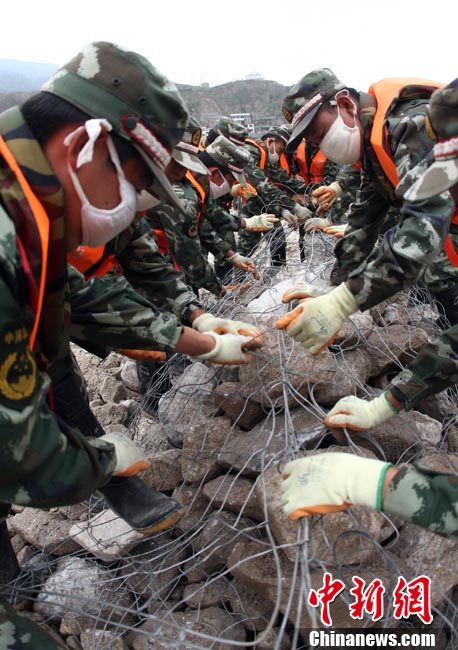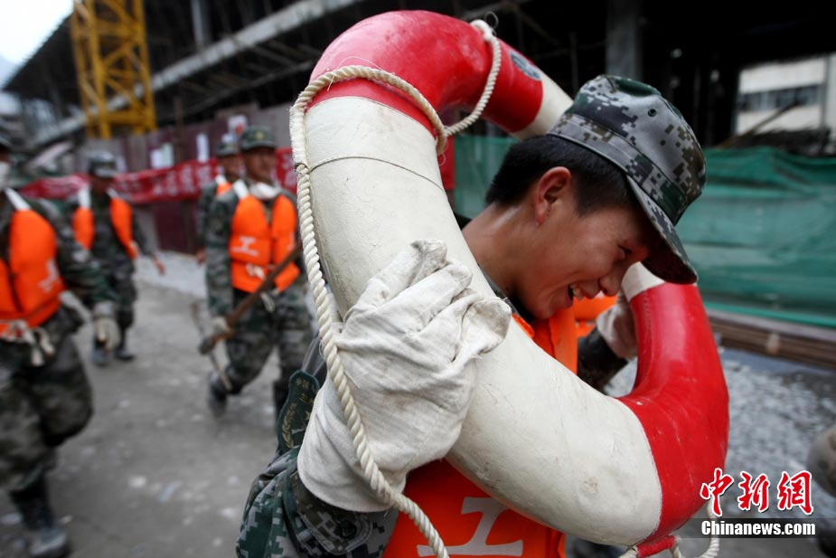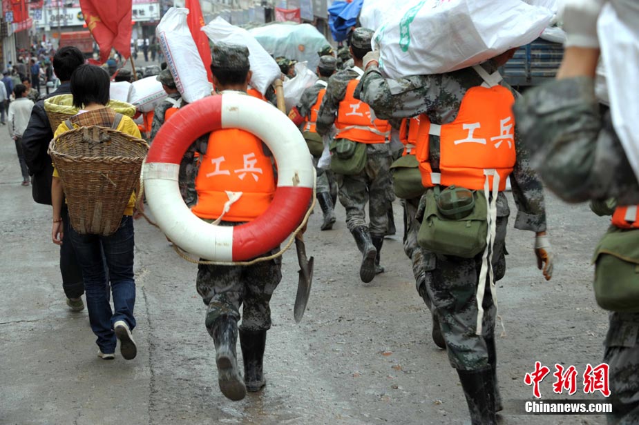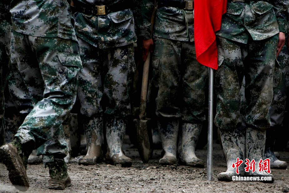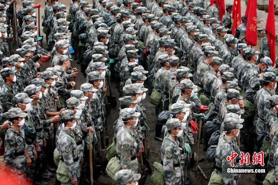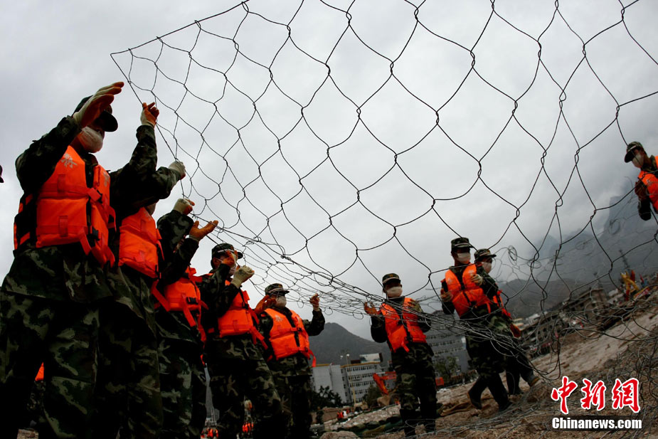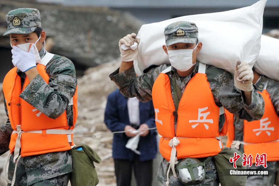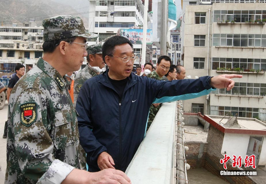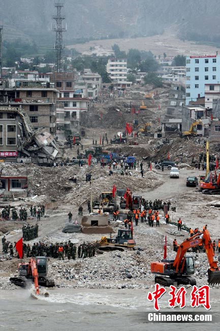 8月18日上午,由蘭州軍區(qū)某集團軍“開山斧工兵團”大型機械對舟曲特大山洪泥石流災害所致三眼峪重災區(qū)危樓進行拆除。中新社記者 陳文 攝