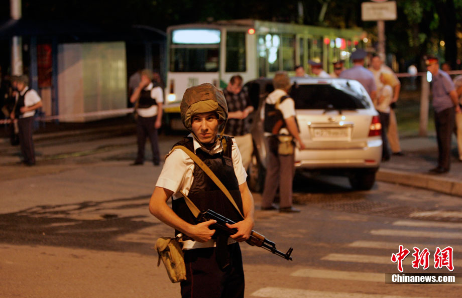 當(dāng)?shù)貢r(shí)間8月17日,俄羅斯北高加索聯(lián)邦區(qū)首府皮亞季戈?duì)査箍耸兄行囊幻斗胖迷谲噧?nèi)的無外包裝的爆炸裝置在一咖啡館附近爆炸,造成30人受傷,其中6人重傷。截至18日晨,仍有29人留院接受治療。當(dāng)?shù)鼐秸J(rèn)為是北高加索武裝分子制造了此次恐怖襲擊事件。圖為爆炸發(fā)生后用手機(jī)拍攝的畫面。