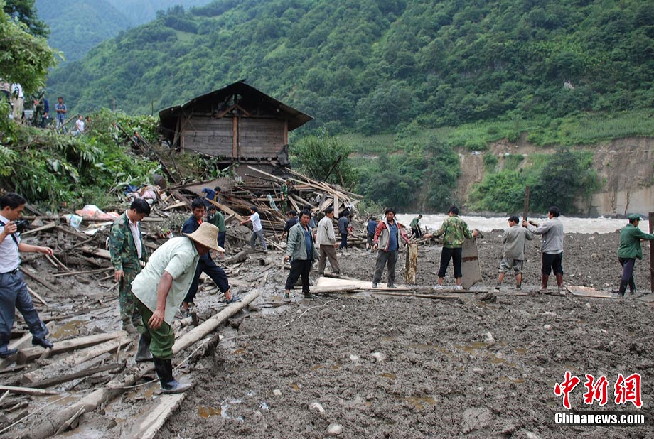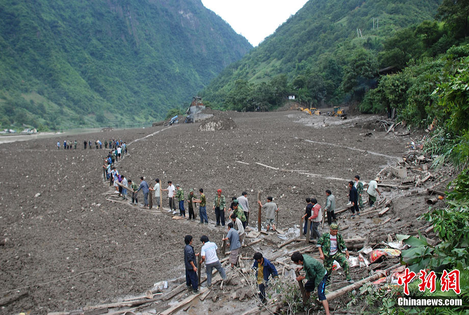 8月18日凌晨1點30分左右,云南省貢山縣獨龍族怒族自治縣普拉底鄉(xiāng)突發(fā)泥石流。截至12時,救援隊伍已經(jīng)營救出61名被困人員,其中有9名重傷,輕傷19名,傷員已經(jīng)送到臨鄉(xiāng)醫(yī)院進行搶救。最新統(tǒng)計,災害已導致當?shù)?7人失蹤。圖為貢山泥石流災害現(xiàn)場。中新社發(fā) 王靖生 攝