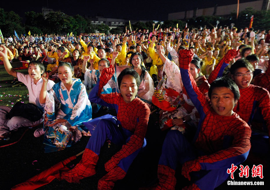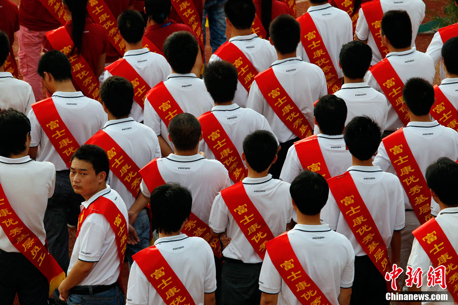 8月18日下午,深圳市富士康廠區(qū),舉行了一場由富士康員工自發(fā)倡議、富士康工會聯(lián)合會組織的規(guī)?涨暗娜f人誓師活動,活動的主題是“珍惜生命,關(guān)愛家人”,2萬員工跟著一輛輛彩車歡聲笑語,員工們說這是他們的“狂歡節(jié)”。