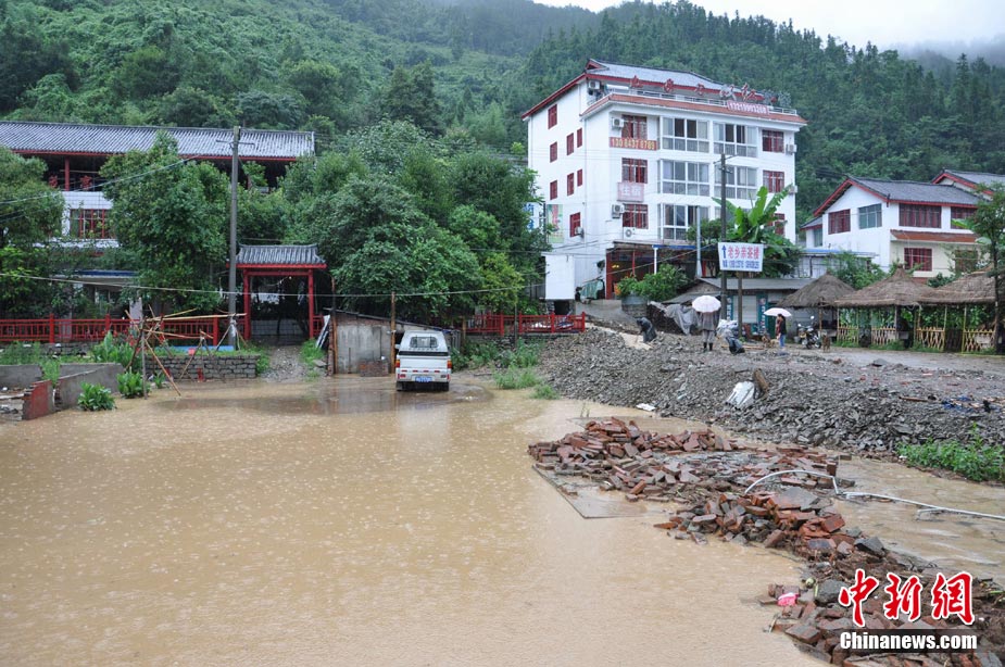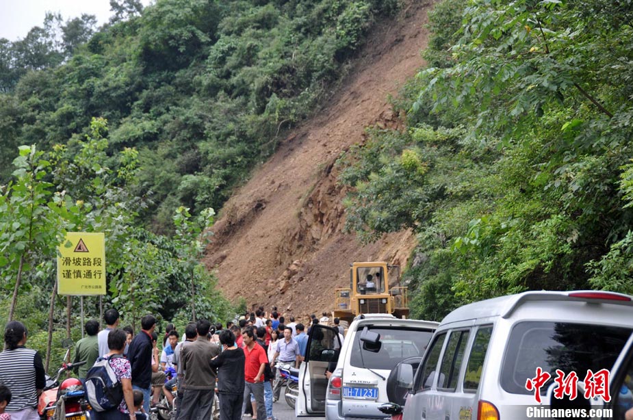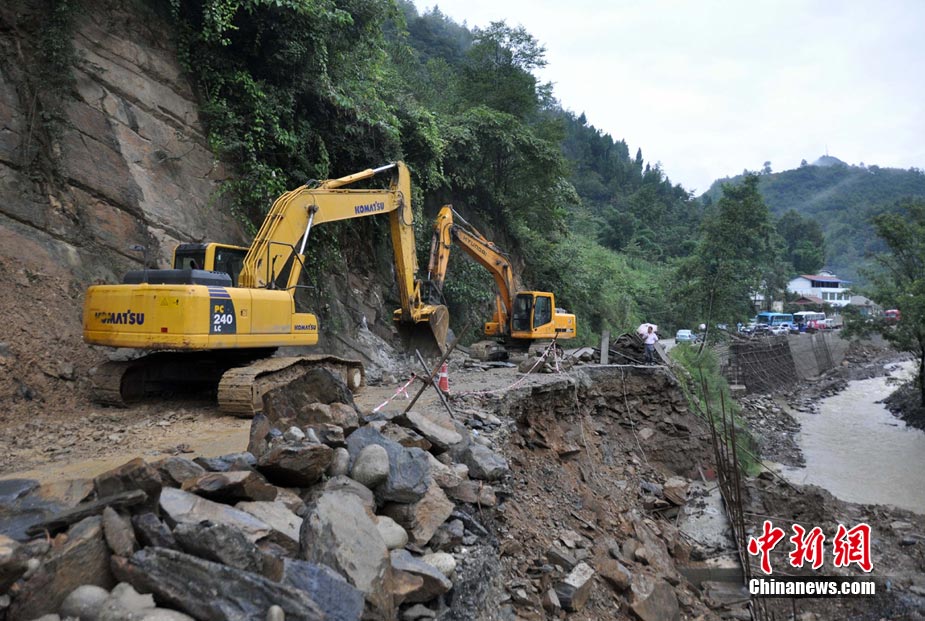 8月18日16時,四川省青川縣城前往蒿溪鄉(xiāng)的道路由于暴雨造成塌方,導(dǎo)致道路中斷,車輛通行受阻。現(xiàn)場由于再次出現(xiàn)大量山體垮塌,部分路段搶險(xiǎn)工作被迫停止。中新社發(fā) 劉忠俊 攝