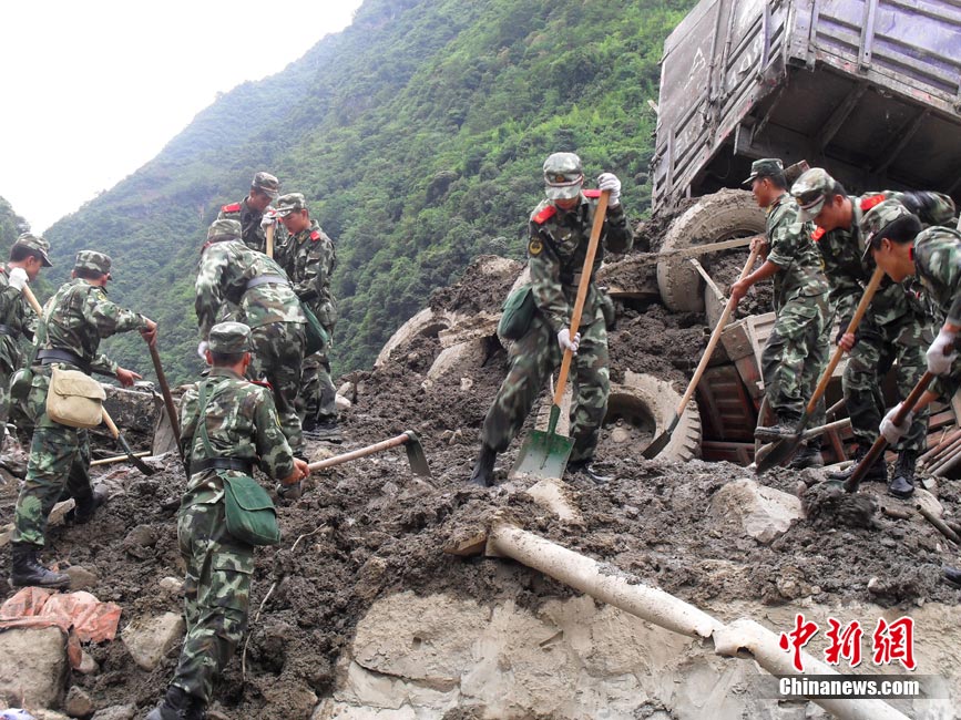 8月19日,中央氣象臺消息,“8.18”云南貢山縣普拉底鄉(xiāng)泥石流災害地區(qū)會有中雨,降雨將給救援工作帶來難度。圖為武警云南總隊怒江支隊官兵在災區(qū)按照救援計劃實施救援。 中新社發(fā) 陳慶祥 郝亞鑫 攝 圖片來源:CNSPHOTO