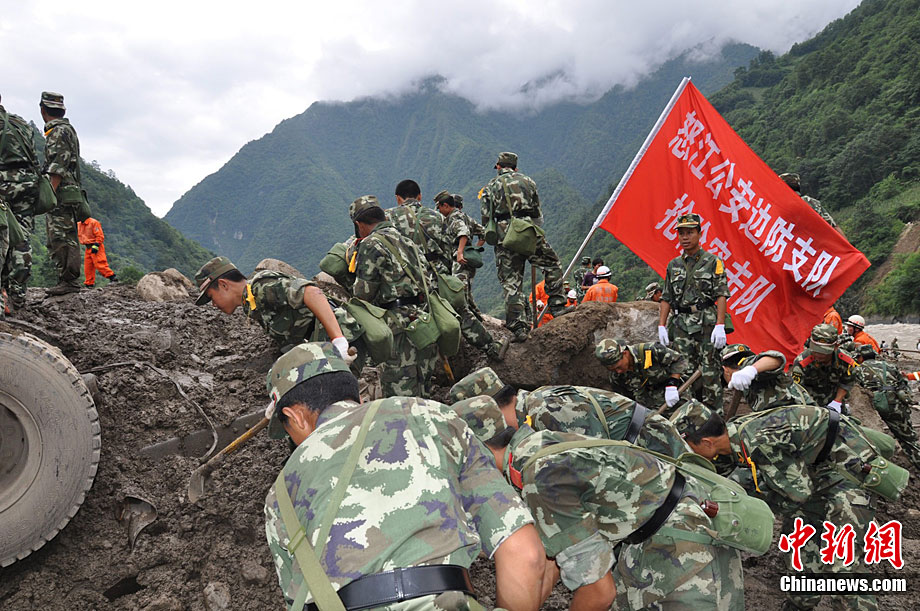 8月18日凌晨1時(shí)30分左右,怒江傈僳族自治州貢山獨(dú)龍族怒族自治縣普拉底鄉(xiāng)突發(fā)泥石流,造成重大人員傷亡和巨大財(cái)產(chǎn)損失。事故發(fā)生后,有各級(jí)部門(mén)組成的救援組立即展開(kāi)搜救工作。圖為救援隊(duì)正在搜救失蹤人員。中新社發(fā) 田洪 攝