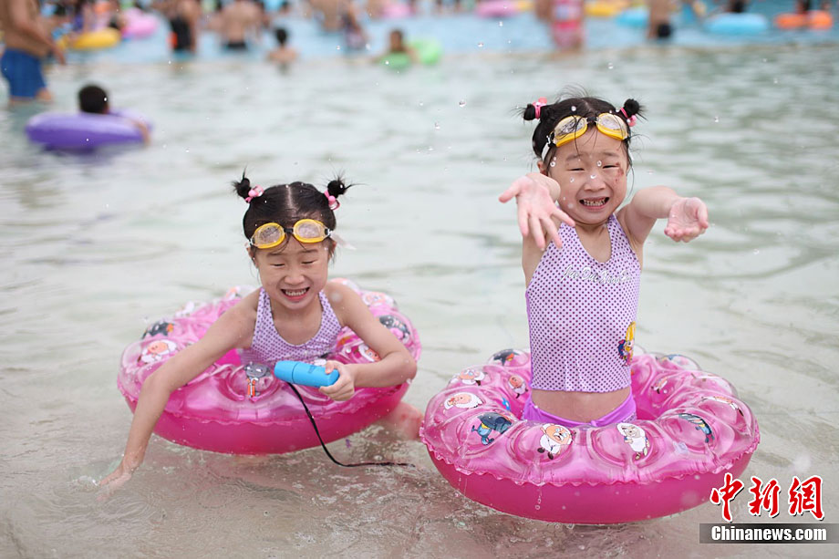 8月19日,重慶再發(fā)高溫橙色預警,預計23日以前該市將連晴高溫。為尋涼爽,一小孩趴在噴水孔附近感受水噴全身的清涼。劉函冉 攝