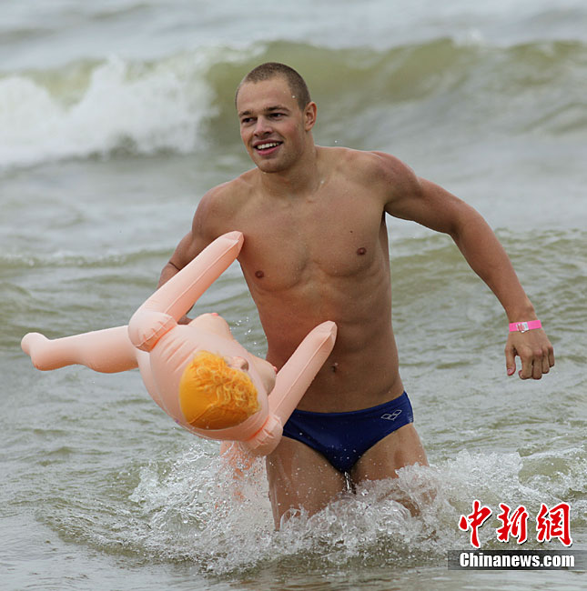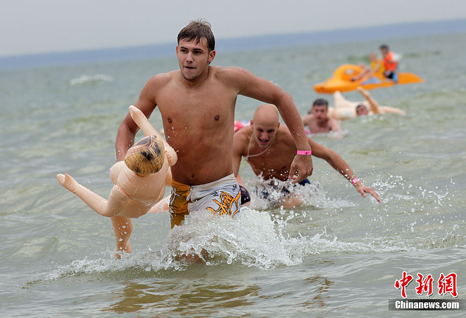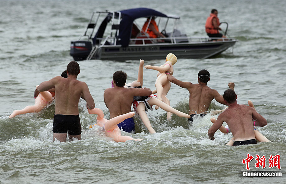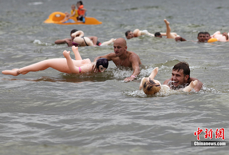 當(dāng)?shù)貢r(shí)間8月22日,一場(chǎng)別開聲面的搞笑游泳比賽在俄羅斯西伯利亞城市新西伯利亞舉行,數(shù)十名俄羅斯壯漢懷抱“充氣娃娃”躍入河中進(jìn)行游泳比賽。不過,從比賽實(shí)況來看,很顯然這些參賽者并沒有把充氣娃娃當(dāng)“伴侶”來對(duì)待,多半都當(dāng)成游泳圈,使得氣氛既搞笑卻又帶點(diǎn)詭異。