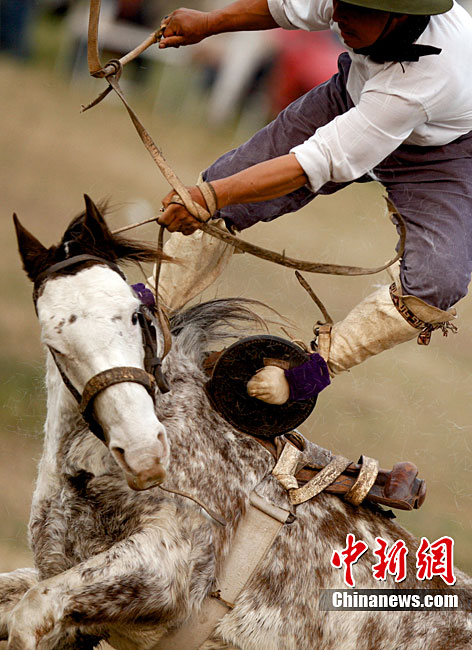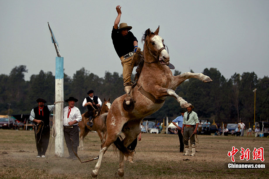 當(dāng)?shù)貢r(shí)間8月22日,阿根廷小鎮(zhèn)豪雷吉舉行了傳統(tǒng)的高喬民俗節(jié)馬術(shù)表演。驚險(xiǎn)刺激的馬術(shù)表演使觀眾們看到了別樣風(fēng)俗。