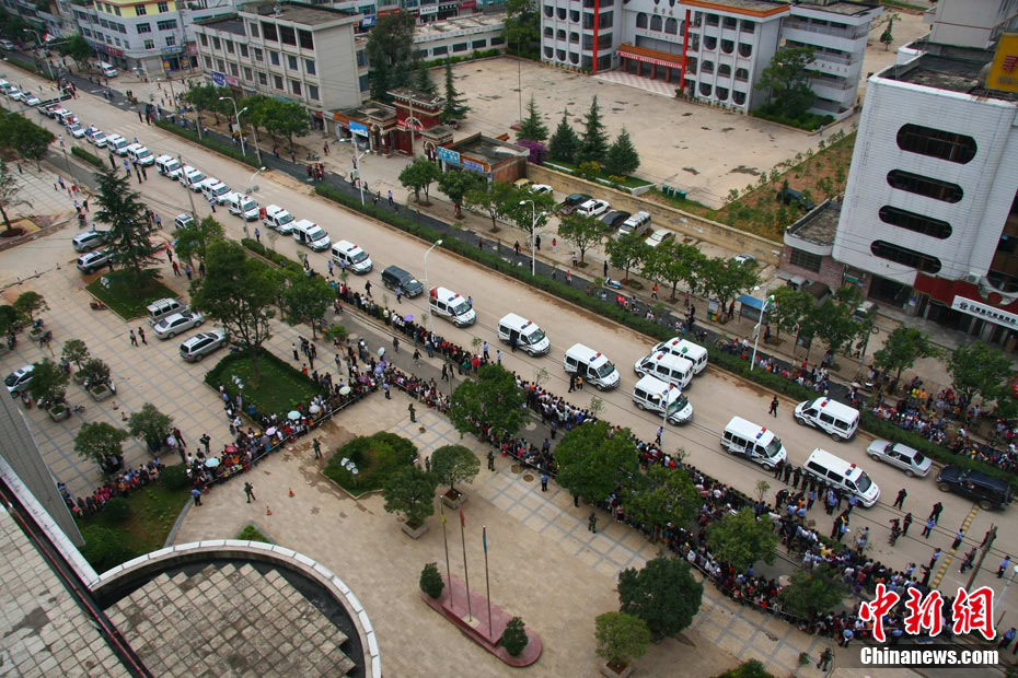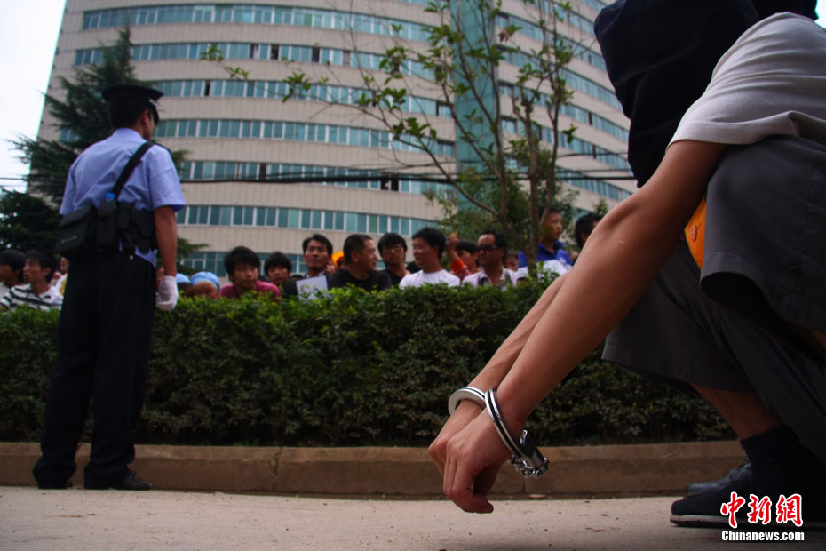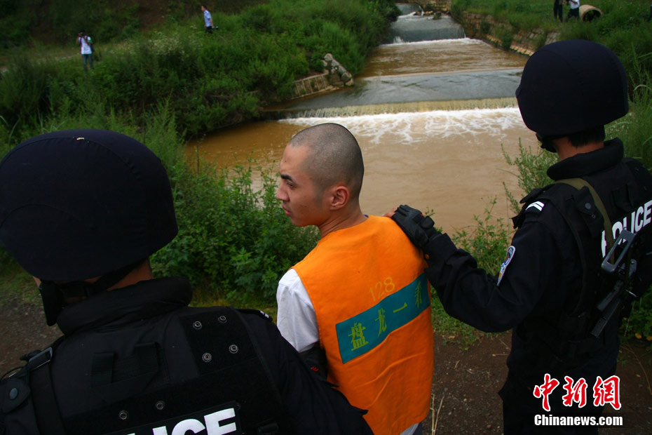 8月23日,昆明警方押解“洪興幫”黑惡勢力團伙21名主要犯罪嫌疑人指認現(xiàn)場。昆明警方連日來積極開展“嚴打整治行動”,于2010年5月成功搗毀長期在尋甸縣作惡的“洪興幫”黑惡勢力團伙,繳獲作案大型砍刀30余把,軍用子彈58發(fā),防刺服2件以及20余部通訊設(shè)備。中新社發(fā) 任東 攝