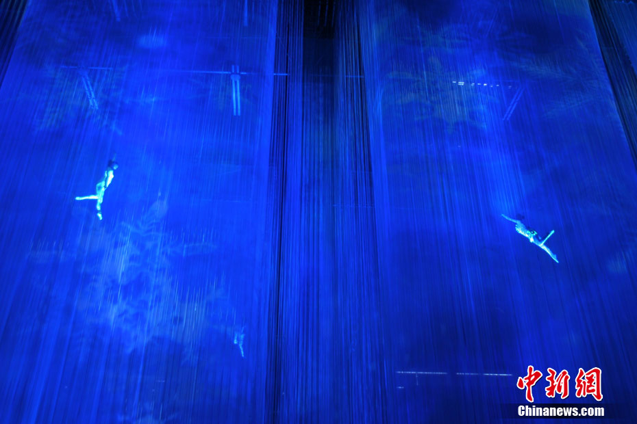 8月23日,北京武搏會(huì)開(kāi)幕式彩排中,演員在由12.5萬(wàn)根筷子粗細(xì)的腈綸線組成的“線陣”中表演。據(jù)了解,這是國(guó)內(nèi)首次使用“線陣”作為開(kāi)幕式創(chuàng)意。 中新社發(fā) 蘇丹 攝