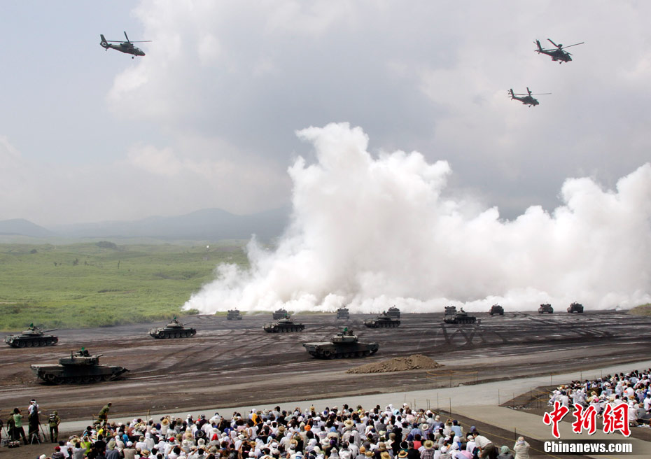 日本陸上自衛(wèi)隊(duì)24日開始在富士山下的靜岡縣御殿場市東富士演習(xí)場舉行2010年綜合火力演習(xí)。當(dāng)天的演習(xí)動用了90式坦克、“阿帕奇”直升機(jī)等武器。2000多名官兵參加演習(xí)。