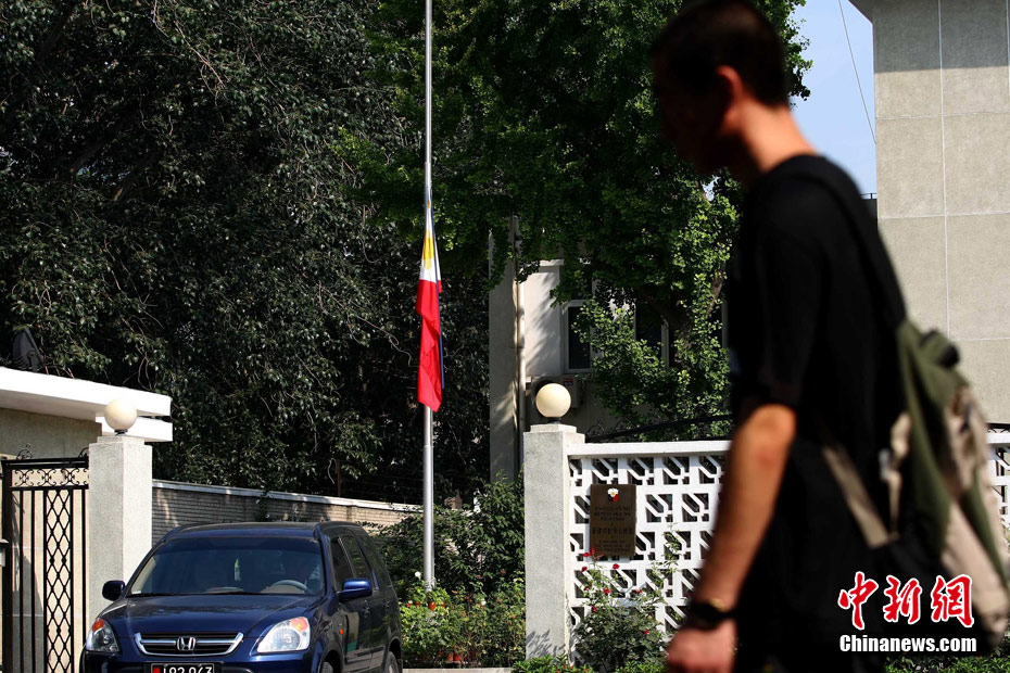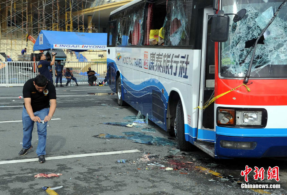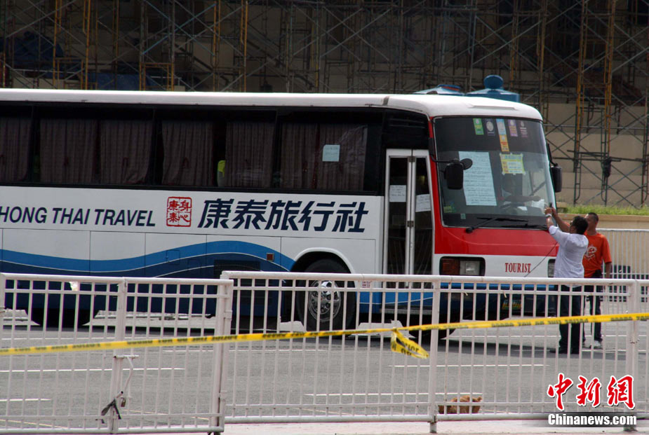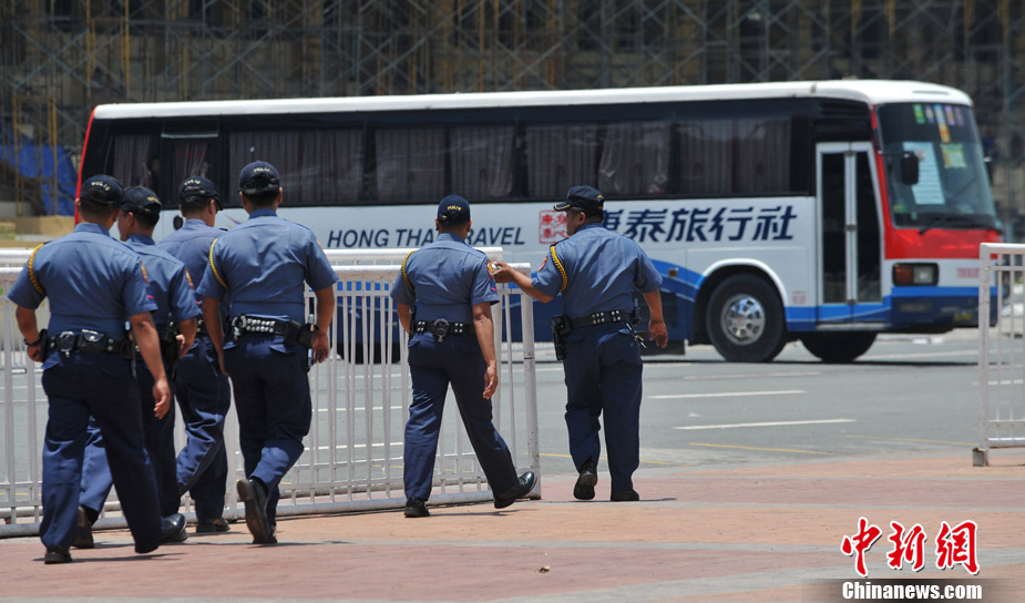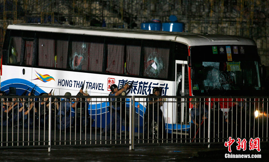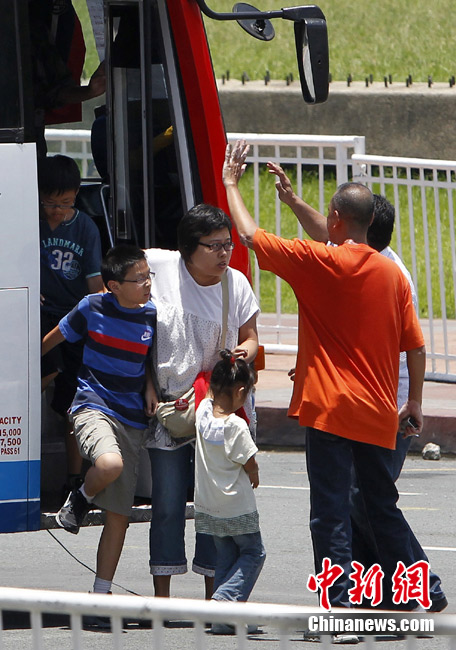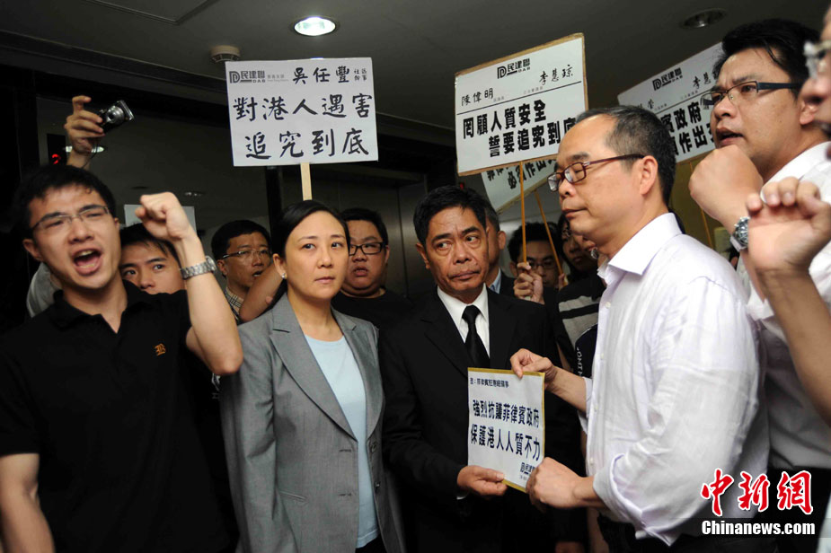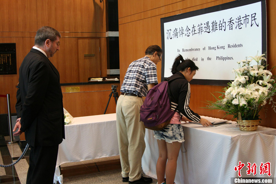 8月25日晚上,在菲律賓挾持人質(zhì)事件中傷亡的傷者和家屬及遇難者遺體乘香港政府包機(jī)返抵香港。特區(qū)政務(wù)司司長(zhǎng)唐英年、中聯(lián)辦副主任李剛、及多名特區(qū)官員上機(jī)慰問(wèn)。停機(jī)坪又舉行了告別儀式,唐英年及家屬在風(fēng)笛聲中,將花圈蓋上靈柩。整個(gè)儀式歷時(shí)一個(gè)多小時(shí),靈柩隨即運(yùn)往葵涌公眾殮房。部份傷者送威爾斯醫(yī)院治理。中新社發(fā) 洪少葵 攝