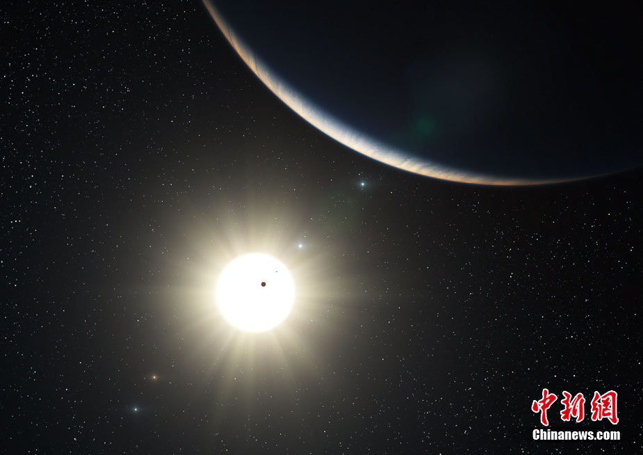 近日,科學家發(fā)現(xiàn)了一個距離地球127光年的與太陽系十分類似的巨大星系。美國宇航局太空望遠鏡在太陽系外偵測到了5顆行星。這5顆行星與其母星的距離與太陽系內(nèi)行星與太陽的距離十分相似。天文學家正在尋找另外2顆行星存在的證據(jù)。圖為該星系的藝術想象圖。