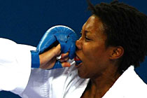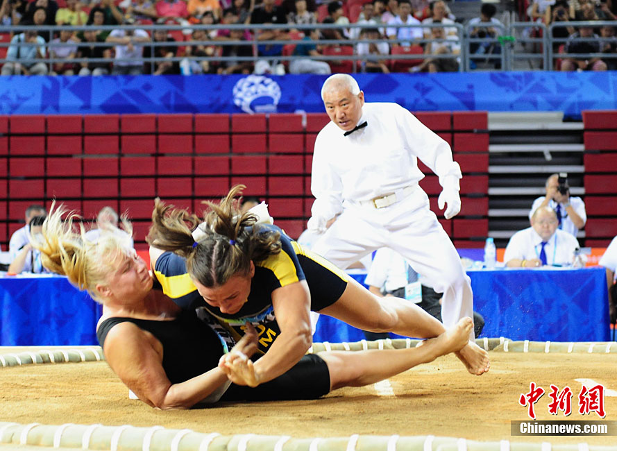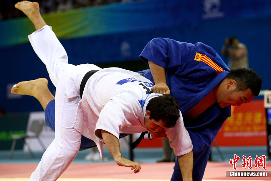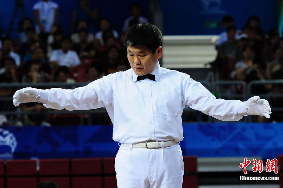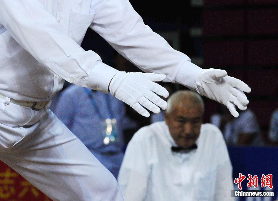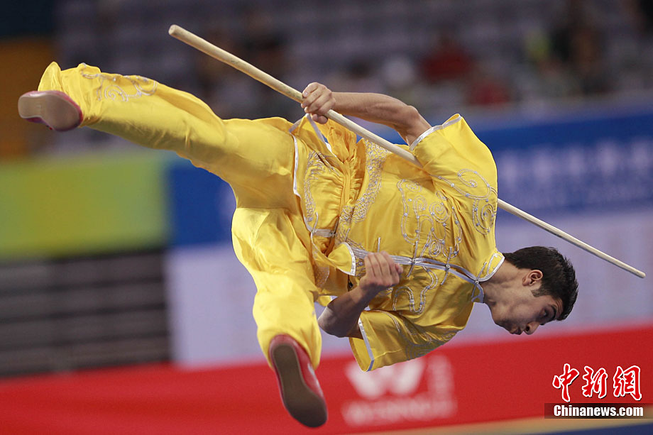 8月28日,2010年北京首屆武會進(jìn)行首日比賽,其中武術(shù)項(xiàng)目的比賽在北京奧林匹克體育中心體育館進(jìn)行。圖為中國香港選手Zheng Tian Hui在女子劍術(shù)的比賽中以9.80分穩(wěn)居第一位。中新社記者 盛佳鵬 攝