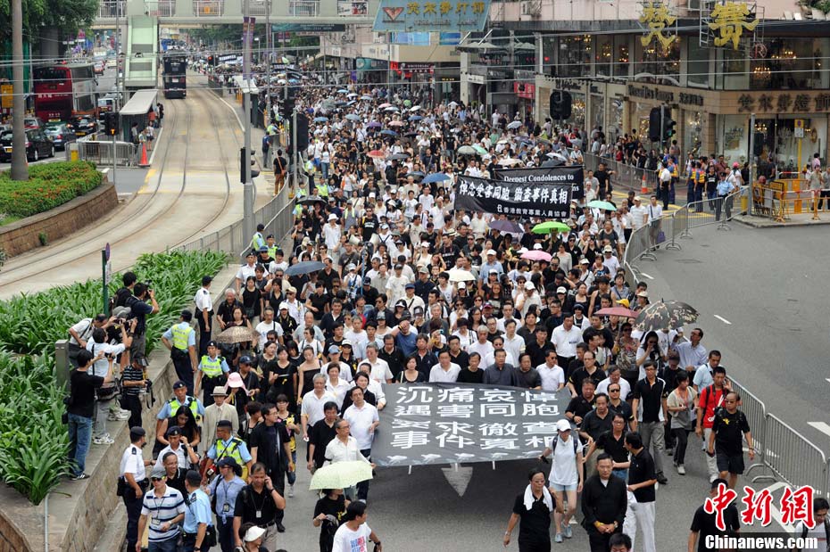 8月29日,香港立法會(huì)議員、各黨派,人士與5萬(wàn)多香港市民在維多利亞公園集會(huì)并游行至立法會(huì)。圖為集會(huì)游行現(xiàn)場(chǎng)。 中新社發(fā) 鄭祚聲 攝