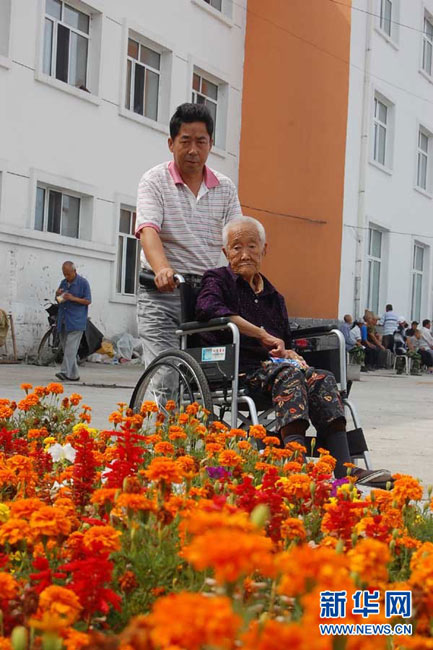 9月1日,在黑龍江省東寧縣社會(huì)敬老院,李鳳云老人在義子高自祥的照料下散步。據(jù)李鳳云老人講述,她原名李壽段,1922年出生于朝鮮平壤一個(gè)窮苦農(nóng)民家庭,19歲那年為治療母親重病賣身日本“工廠”,隨日本人來到黑龍江省阿城市,后被日本兵抓到東寧要塞的“慰安所”內(nèi),直至日本投降,才逃出苦海,在東寧縣大肚川鎮(zhèn)隱瞞身份居住下來。圖片來源:新華網(wǎng)