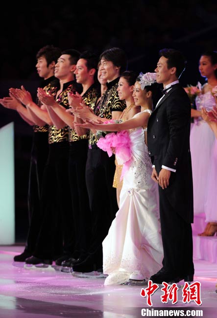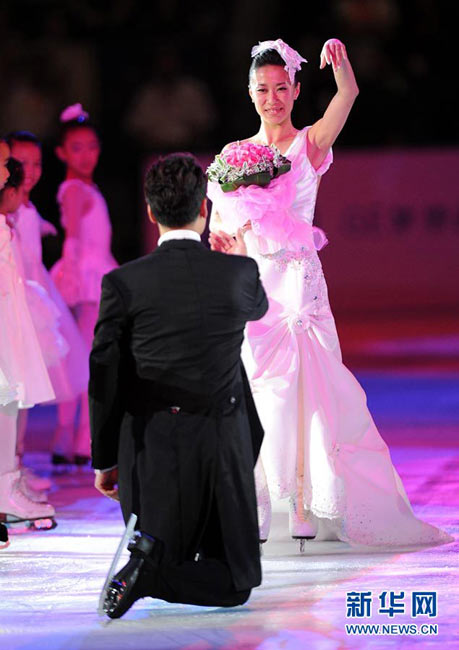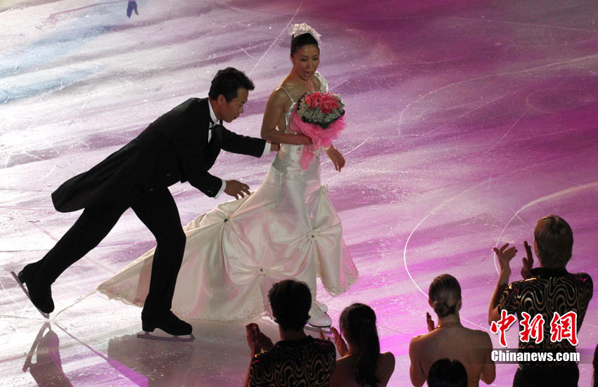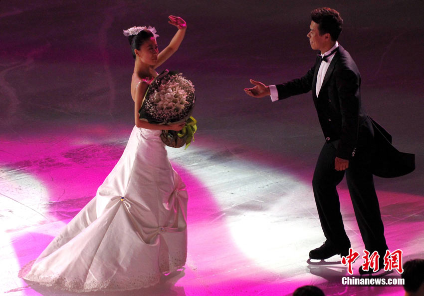 9月4日,申雪/趙宏博在首都體育館舉辦冰上婚典,并邀請普魯申科、亞古丁、約翰尼·威爾、淺田真央、羅切特等世界花滑巨星,聯(lián)袂世界著名編舞大師瑞內·羅卡、歌星張靚穎、小提琴家呂思清等,為中國觀眾奉獻上一場賞心悅目、浪漫唯美的視聽盛宴。