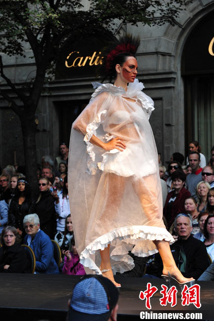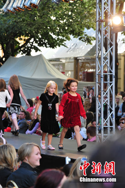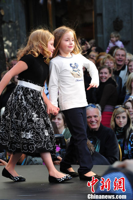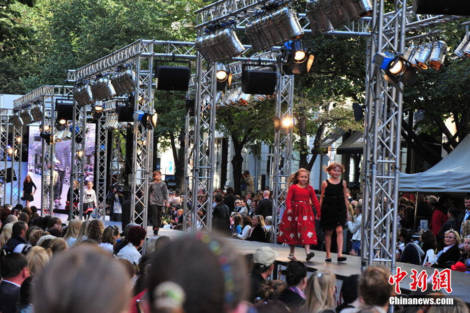 捷克首都布拉格4日和5日接連兩天在市中心最繁華的商業(yè)街巴黎大街封閉車輛交通,在街道中間搭起長臺,向公眾表演時裝秀。其中一組兒童秀引起觀眾轟動。黃頻 攝