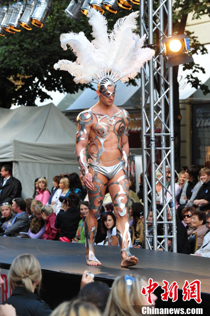 捷克布拉格繁華街區(qū)上演街頭時裝秀