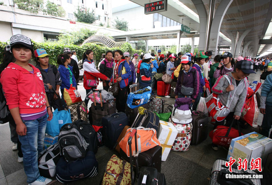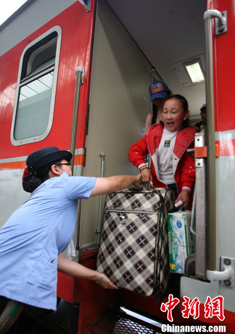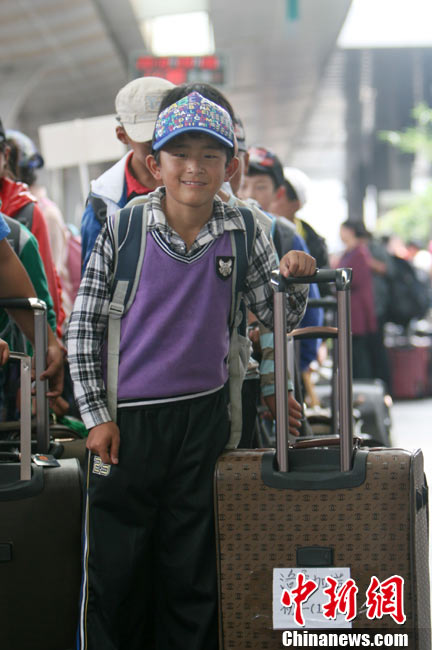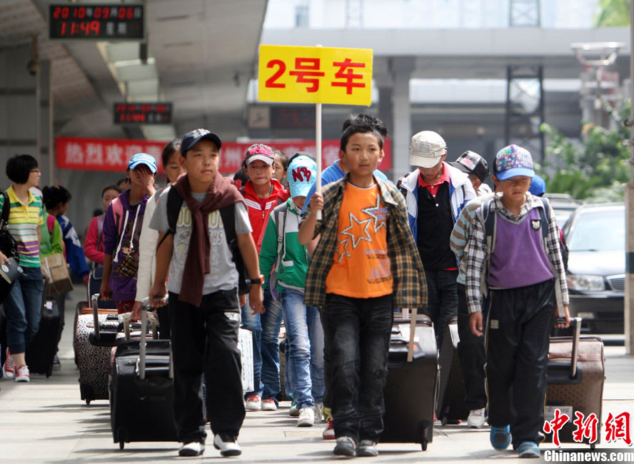9月6日中午,青海省玉樹州地震災(zāi)區(qū)民族中學2013級初一、高一486名新生經(jīng)過長途跋涉安全抵達成都,他們將在四川都江堰八一聚源中學異地過渡。至此,玉樹州民族中學成建制轉(zhuǎn)移安置工作全部結(jié)束。圖為玉樹州民族中學新生抵達成都火車站。 中新社發(fā) 劉忠俊 攝