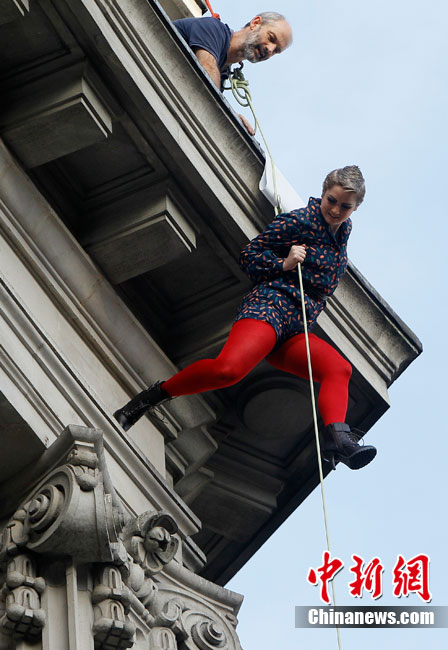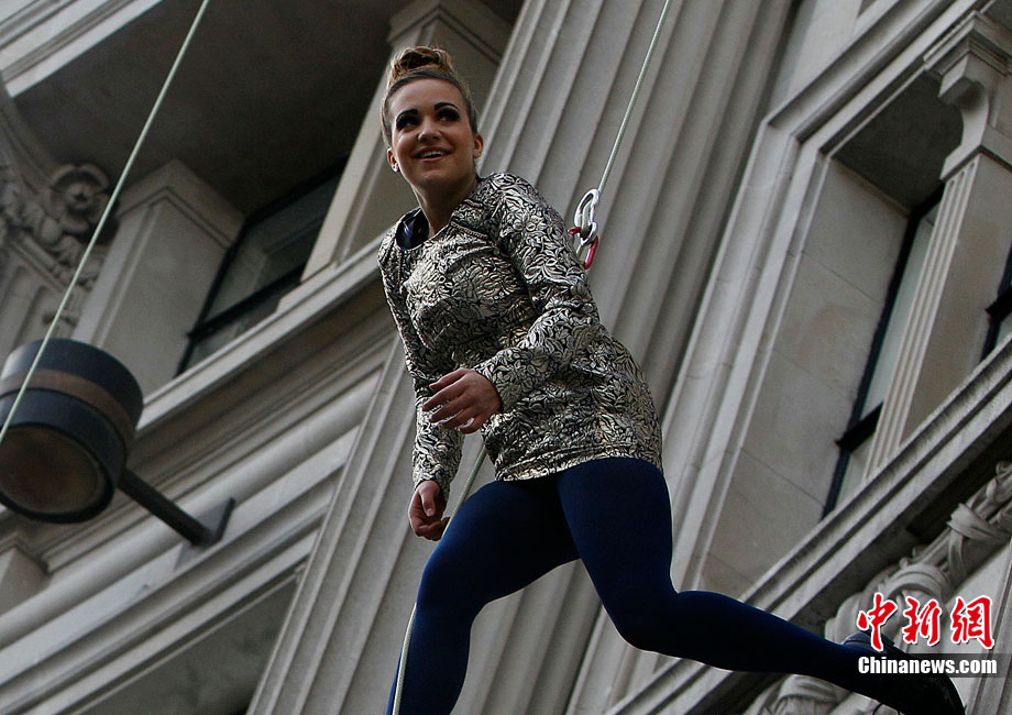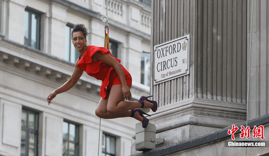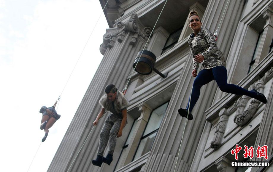 當(dāng)?shù)貢r(shí)間9月6日,一批模特在英國倫敦掛上鋼絲,在大樓外上演了一場精險(xiǎn)刺激的空中時(shí)裝秀。這場時(shí)裝秀是為了宣傳即將到來的英國時(shí)裝周而特別設(shè)計(jì)的。