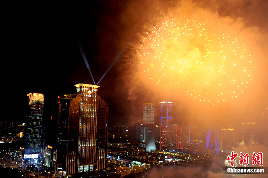 9月6日晚8點(diǎn)30分,深圳夜空璀璨絢麗,慶祝深圳經(jīng)濟(jì)特區(qū)建立30周年焰火晚會(huì)在深南大道水晶島舉行。今晚燃放煙花數(shù)量145107發(fā),主要品種19種,全長(zhǎng)30分鐘,共四個(gè)樂(lè)章。深圳市民分別在蓮花山公園、市民中心、深南路、彩田路、會(huì)展中心等區(qū)域觀看深圳經(jīng)濟(jì)特區(qū)30周年慶典煙花晚會(huì)。中新社記者 陳文 攝