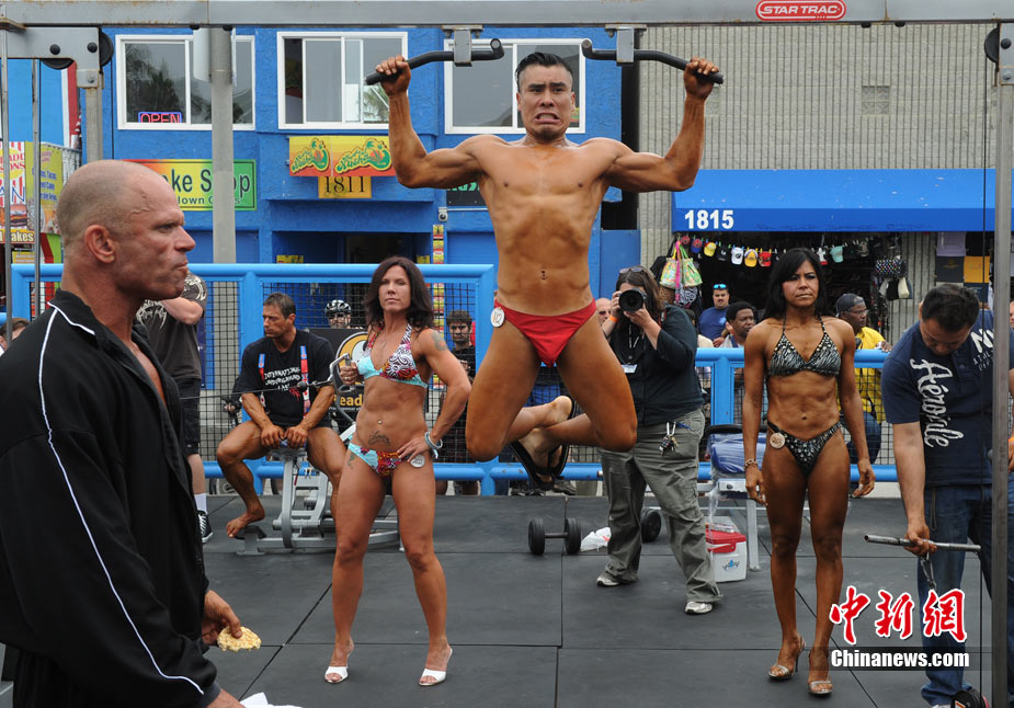 9月6日,在美國洛杉磯的威尼斯海灘,健美愛好者們參加一年一度的海灘健美錦標(biāo)賽。