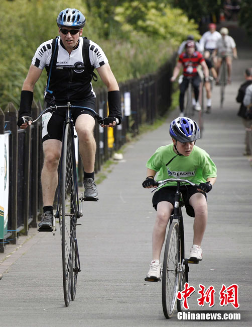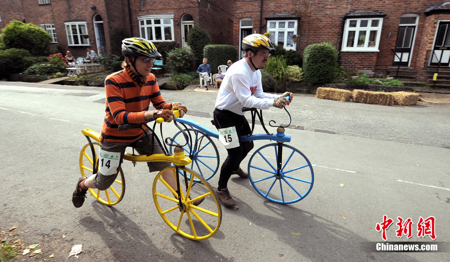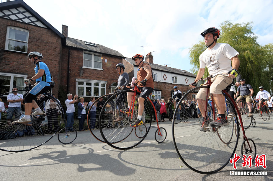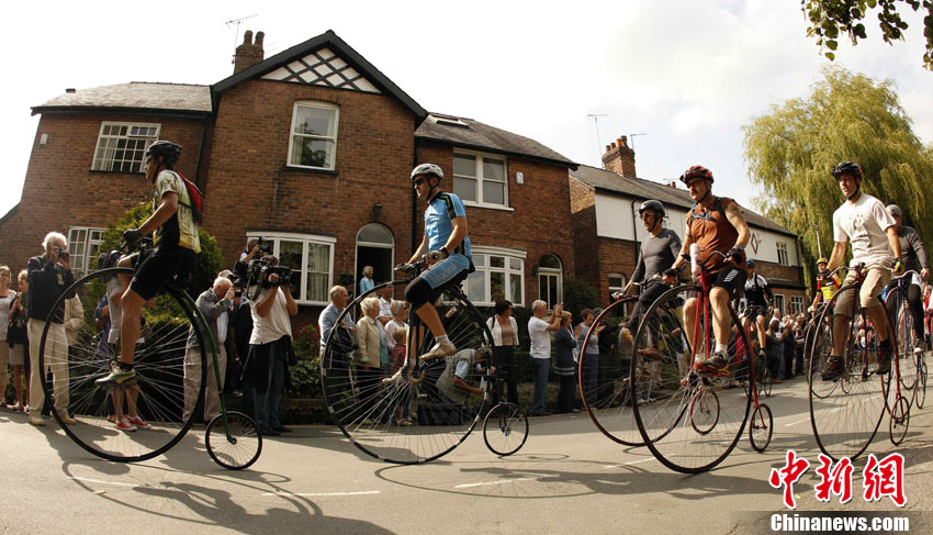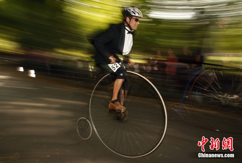 近日,英國(guó)大納茨福德舉行了復(fù)古自行車(chē)比賽。該項(xiàng)比賽每十年舉行一次,參賽者來(lái)自世界各地。他們須在三個(gè)小時(shí)的限時(shí)內(nèi)沿著一公里長(zhǎng)的賽道進(jìn)行騎行比賽。