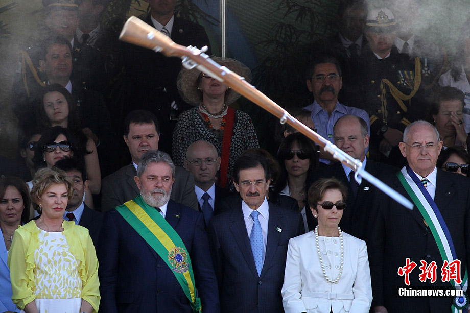 當(dāng)?shù)貢r(shí)間9月7日,巴西首都巴西利亞舉行閱兵式慶祝獨(dú)立188周年,巴西總統(tǒng)盧拉攜夫人參加了這一慶祝儀式。