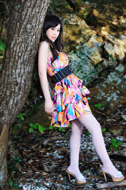 嫩模徐黛妮花裙寫真 露香肩秀婀娜身姿