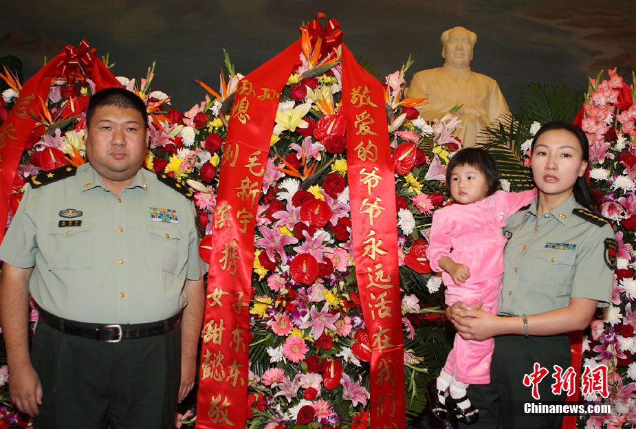 9月9日是毛澤東逝世34周年紀(jì)念日。當(dāng)日上午,毛澤東的孫子、剛剛晉升為解放軍少將的毛新宇與夫人劉濱,帶著兩歲的女兒毛甜懿到位于北京天安門廣場(chǎng)的毛主席紀(jì)念堂敬獻(xiàn)鮮花。中新社記者 任晨鳴 攝