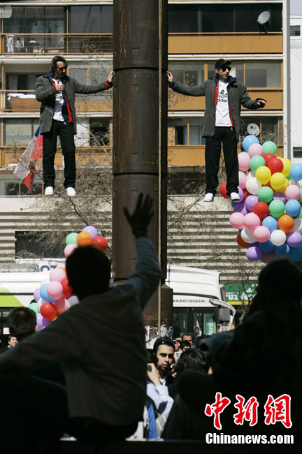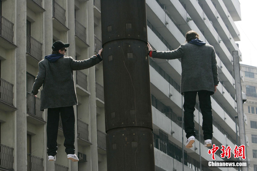 9月9日,智利著名的“魔術(shù)二人組”魔術(shù)師Jean Paul Olaverry和Nicolas Luisetti,在首都圣地亞哥街頭進(jìn)行空中漂浮魔術(shù)。他們將在空中漂浮200分鐘以此來慶祝智利獨(dú)立200周年。