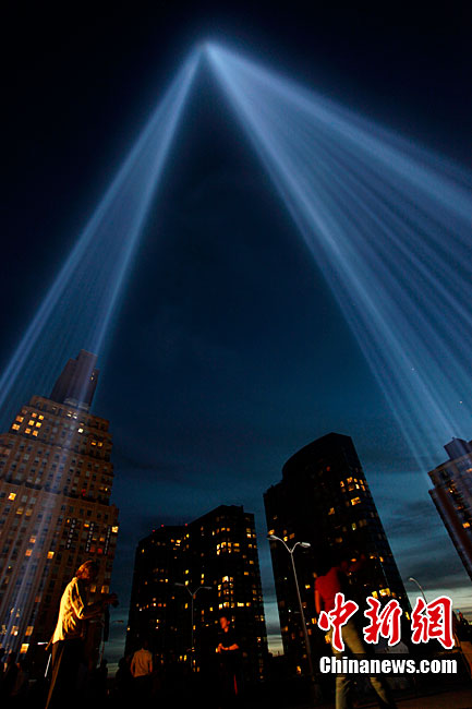 紐約世貿(mào)遺址當(dāng)?shù)貢r(shí)間9月11日上午舉行“9·11”事件9周年紀(jì)念活動(dòng),一面“9·11”事件中殘留下來(lái)的美國(guó)國(guó)旗在活動(dòng)中展示。中新社記者 孫宇挺 攝