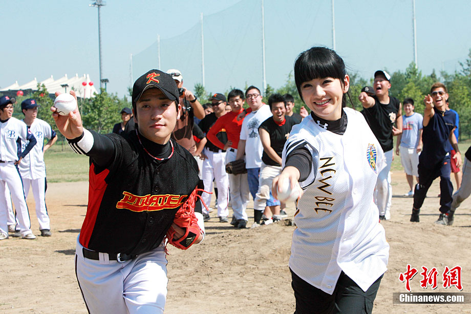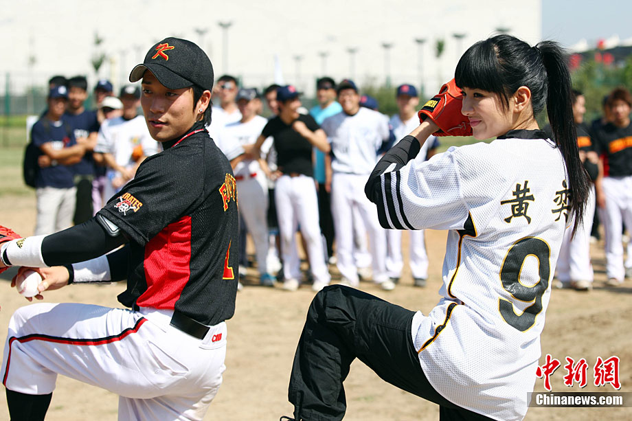 9月12日,全民棒壘聯(lián)盟PBSL秋季聯(lián)賽在北京開幕。黃奕作為開球嘉賓出席。在中日韓精英隊(duì)隊(duì)員們的指導(dǎo)下,黃奕現(xiàn)場(chǎng)打起棒球有模有樣。2010全民棒壘聯(lián)盟PBSL得到了在京的廣大中、日、韓、美等國(guó)棒壘球愛(ài)好者的踴躍支持,秋季聯(lián)賽將有超過(guò)30支泛北京區(qū)域(北京、河北以及天津)球隊(duì)參加。中新社記者 李學(xué)仕 攝
