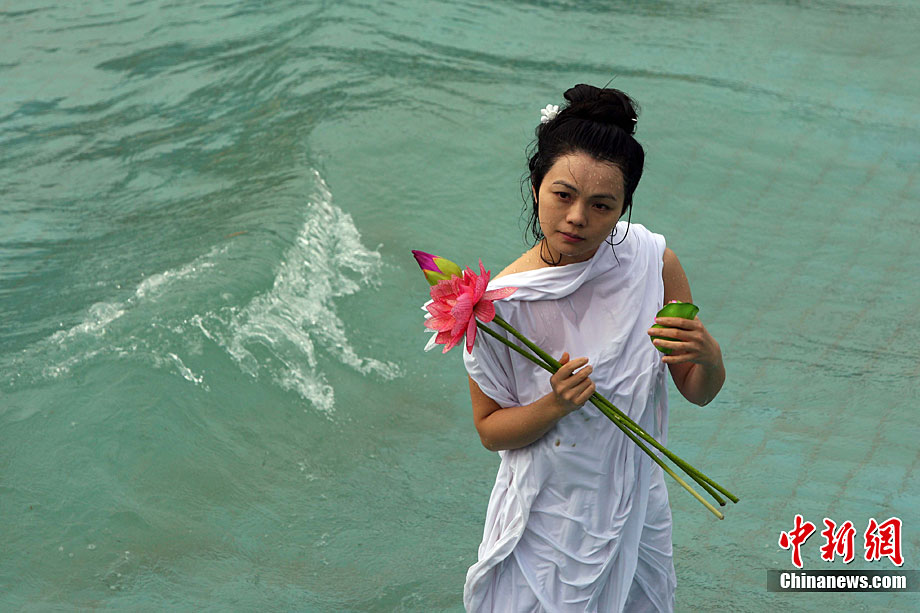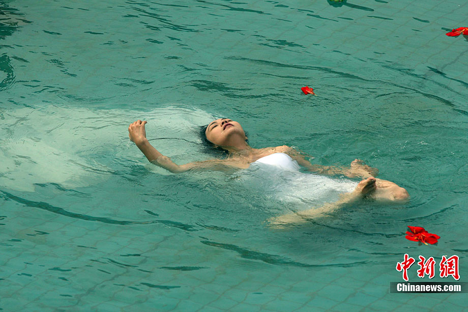9月11日,漂浮于水上時而禪坐、時而圍繞水中漂浮的古琴緩緩起舞,伴著古琴樂,池水不時變換出各種造型的“水墨畫”,一種前沿新藝術(shù)形式在湖北咸寧太乙洞溫泉上演。原創(chuàng)及表演者彭子軒,提出藝術(shù)養(yǎng)生的理念,并獨創(chuàng)以子軒內(nèi)練為基礎(chǔ)的藝術(shù)漂。ò囆g(shù)漂浮舞蹈及藝術(shù)漂浮瑜伽),被譽(yù)為中國古典花樣游泳。毛建軍 攝