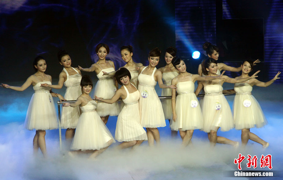 9月12日晚,湖南娛樂頻道2010年度星姐選舉決選月第四場(chǎng)形體秀絢麗上演。星姐12強(qiáng)佳麗身著泳裝,手拿玩具或者運(yùn)動(dòng)裝備,在動(dòng)感的旋律中逐個(gè)亮相,展示青春完美體態(tài)。圖為8號(hào)佳麗謝綠路(右一)從12位準(zhǔn)星姐中脫穎而出,榮獲了“完美體態(tài)獎(jiǎng)”。中新社記者 鄧霞 攝