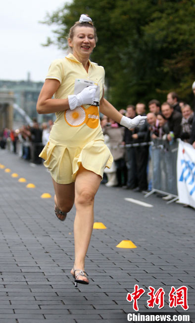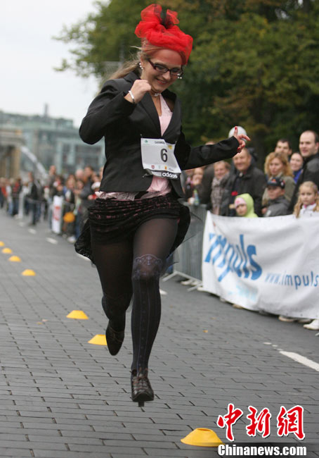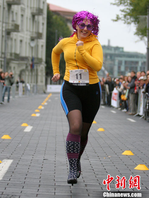9月11日,在立陶宛首都舉行了一場(chǎng)別開生面的高跟鞋賽跑大賽。