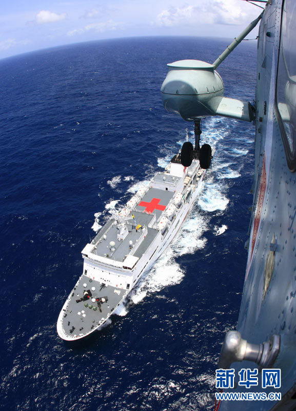 執(zhí)行“和諧使命—2010”任務的中國“和平方舟”號醫(yī)院船安全航行5300余海里后,于15日駛抵亞丁灣。2天后,醫(yī)院船將與正在亞丁灣海域執(zhí)行護航任務的中國海軍第六批艦艇編隊會合,并為護航官兵展開全方位的醫(yī)療服務!昂推椒街邸碧栣t(yī)院船8月31日從中國舟山啟航,前往亞丁灣海域及吉布提、肯尼亞、坦桑尼亞、塞舌爾、孟加拉國等亞非五國執(zhí)行“和諧使命—2010”任務。查春明 攝 (圖片來源:新華網(wǎng))