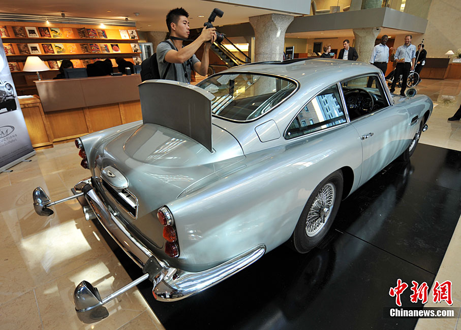 曾經(jīng)在“007”系列電影《金手指》和《雷霆萬(wàn)鈞》中作為主人公詹姆斯·邦德座駕的阿斯頓·馬丁DB5跑車將于2010年10月27日在英國(guó)倫敦巴特西公園(Battersea Evolution)拍賣。圖為這款轎車正在美國(guó)紐約蘇富比拍賣行展出。