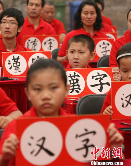 9月16日,北京兩百名書法愛好者在太廟前書寫各種字體的漢字,并共同完成“提筆、蘸墨、落筆、展卷”傳統(tǒng)程序。當日,首屆“兩岸漢字藝術節(jié)”在北京太廟開幕。本次藝術節(jié)由中國藝術研究院、中華文化聯(lián)誼會、臺灣文化總會、河南省安陽市政府聯(lián)合主辦,中國藝術研究推廣中心、臺灣中華新文化發(fā)展協(xié)會共同承辦。中新社發(fā) 蘇丹 攝