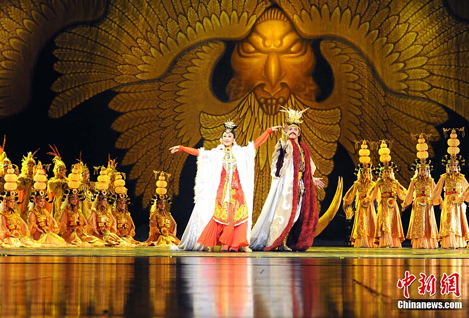 9月16日晚,2010華僑華人創(chuàng)業(yè)發(fā)展洽談會在武漢琴臺大劇院舉辦專場文藝演出,由湖北省歌劇舞劇院演出大型原創(chuàng)民族舞劇《王昭君》,其演員們的精湛演出博得與會代表們的熱烈掌聲。中新社發(fā) 張勤 攝