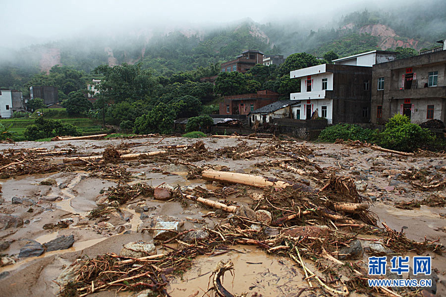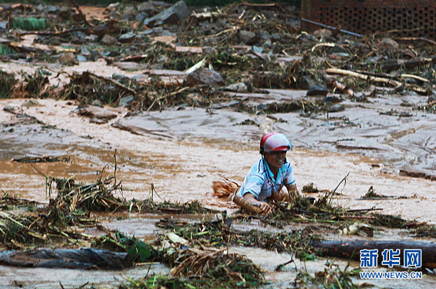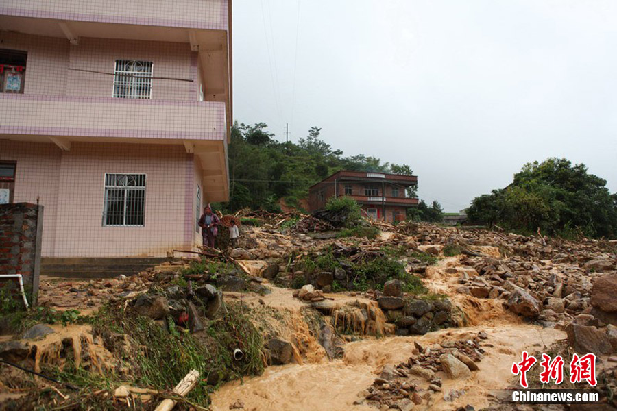據(jù)廣東省防總消息,截至21日23時,“凡亞比”造成廣東高州市、信宜市、陽春市三市共死亡13人,失蹤33人。圖為暴雨引發(fā)山洪災害。中新社發(fā) 聞達 攝