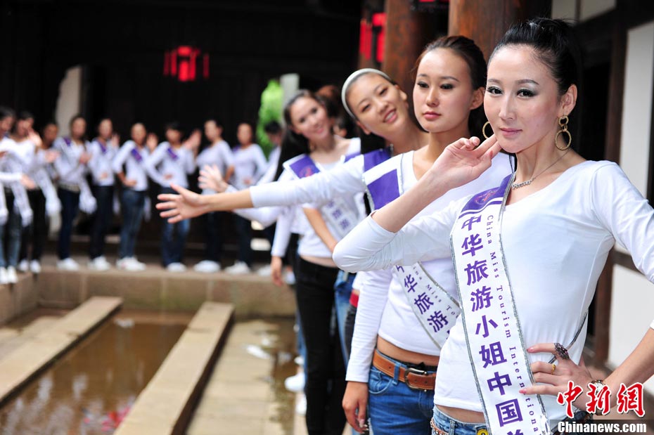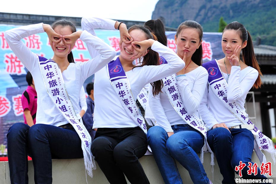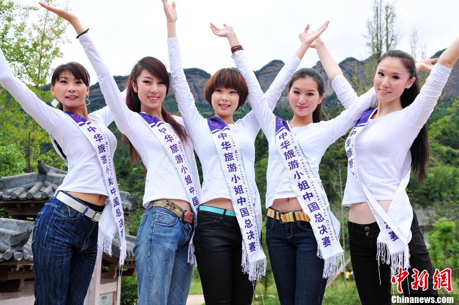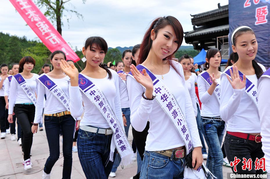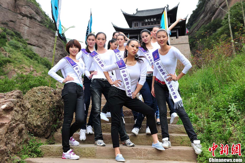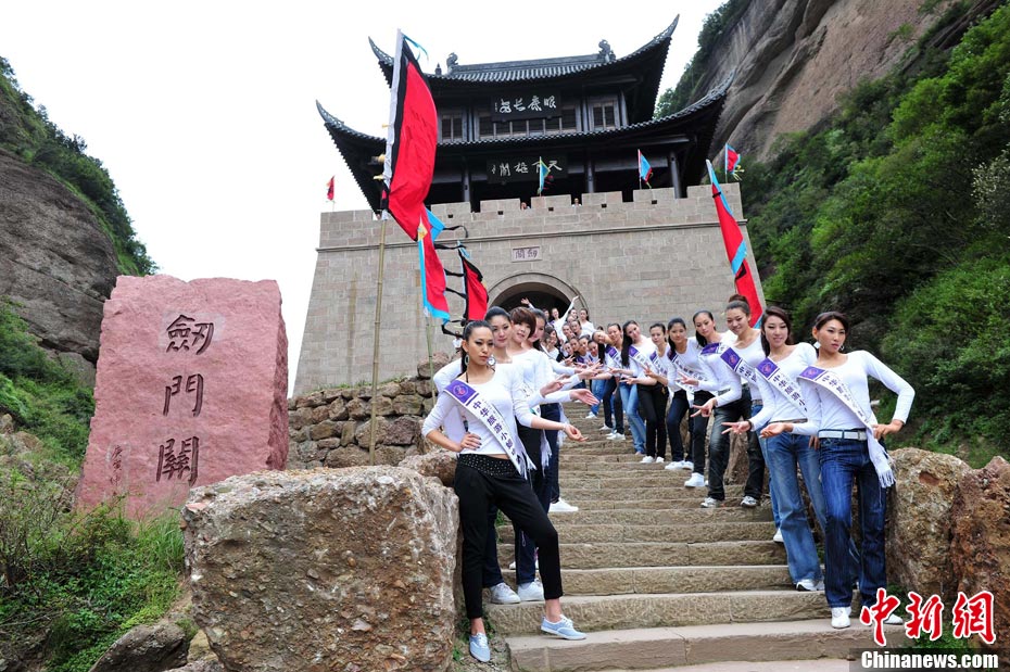 9月23日,2010中華旅游小姐中國(guó)總決賽暨劍門關(guān)旅游形象大使全國(guó)選拔賽在四川省劍閣縣正式開賽。來(lái)自全國(guó)各省區(qū)的40名佳麗同登劍門關(guān),用美麗的身姿為這座千年蜀道雄關(guān)增添了靚麗的風(fēng)景線。中新社記者 李學(xué)仕 攝