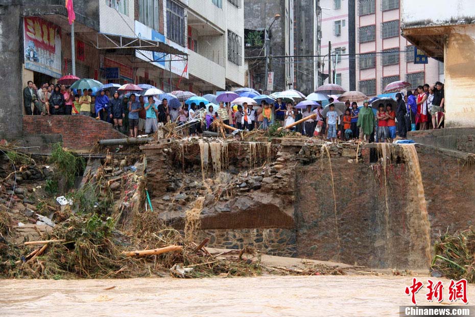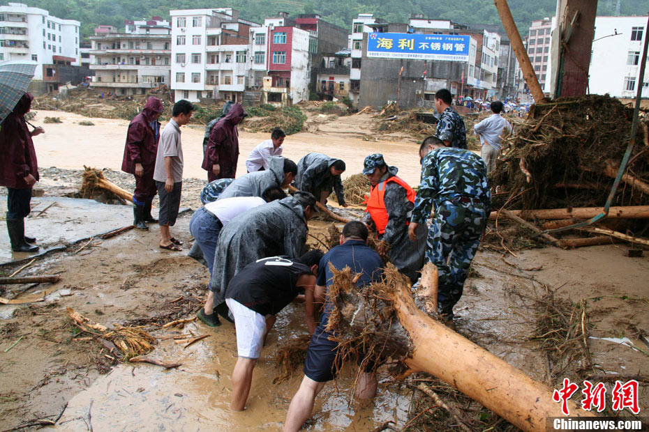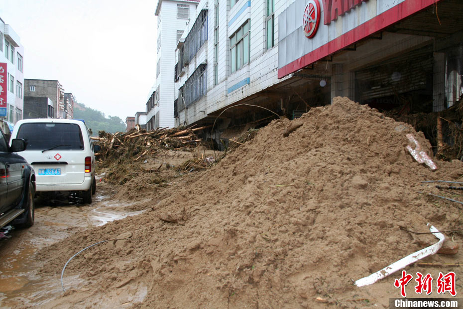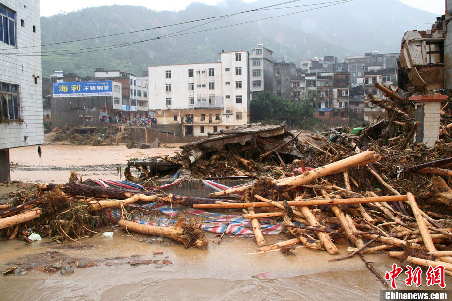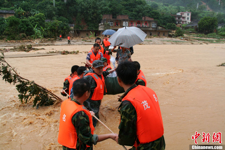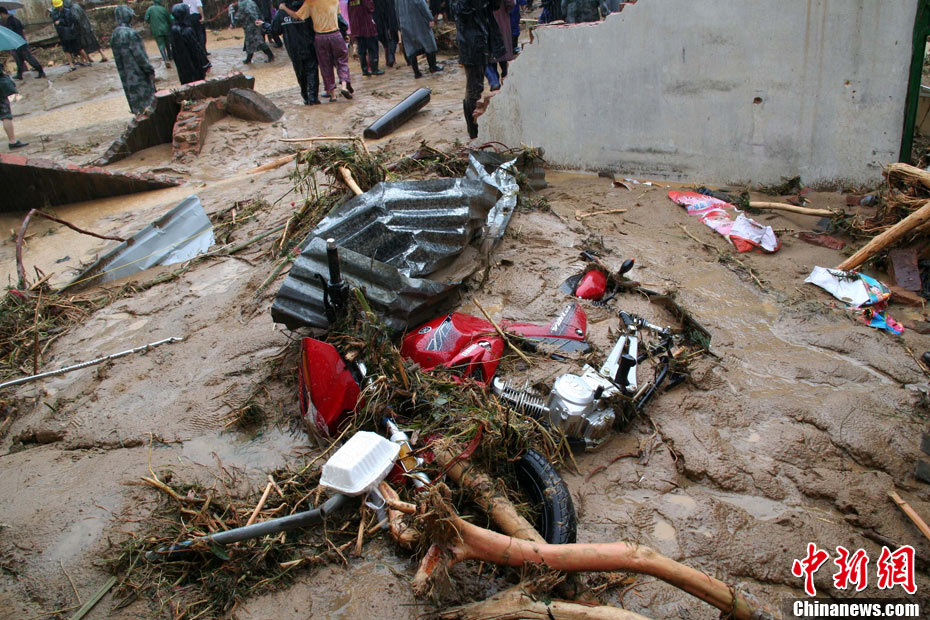 9月23日晚,廣東茂名市三防部門(mén)稱(chēng),受“9·21”特大暴雨引發(fā)山洪災(zāi)害影響,當(dāng)?shù)匾驗(yàn)?zāi)停產(chǎn)工礦企業(yè)達(dá)176家,其中以水電站為主,還包括木業(yè)加工廠(chǎng)、選礦廠(chǎng)等。圖為災(zāi)害現(xiàn)場(chǎng)。中新社記者 梁盛 攝