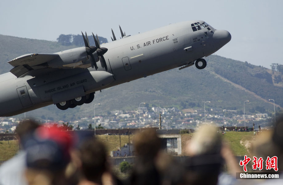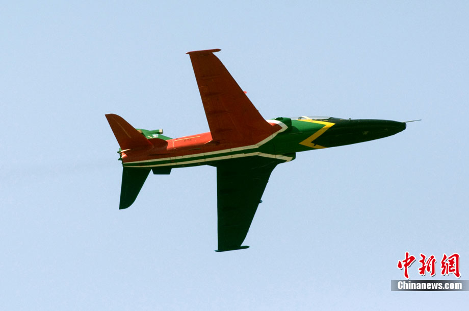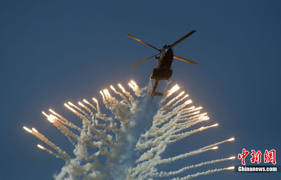 當?shù)貢r間9月24日,南非開普敦Ysterplaat空軍基地舉行了非洲最大的航空裝備和武器展覽會。來自世界各地的軍火商攜帶軍事裝備參展。圖為南非空軍武裝直升機在進行飛行表演。